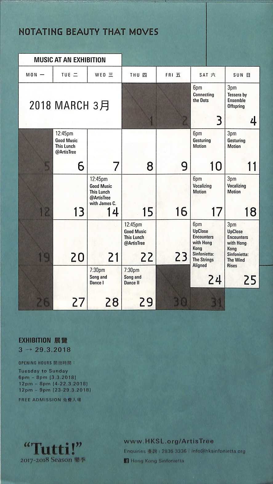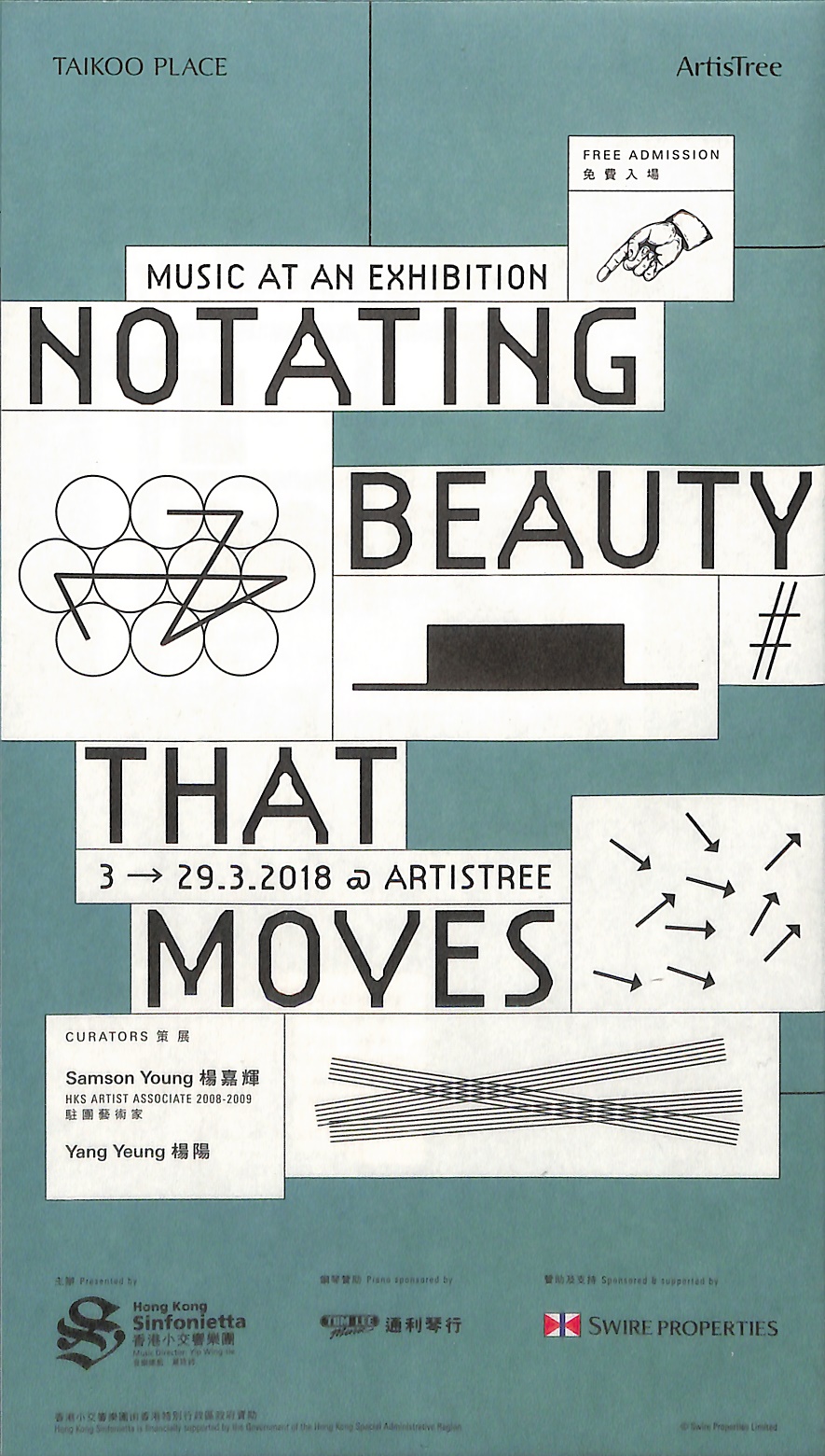 由香港小交響樂團主辦及太古地產贊助,香港作曲家/多媒體藝術家楊嘉輝及聲音掏腰包(soundpocket)創辦人楊陽攜手呈獻,以古典至現代作曲家的記譜模式作起點,結合展覽及音樂演出,探索樂譜、演奏者與觀眾的多重關係。展覽將會展出從世界各地搜集的樂譜手稿以及不同藝術媒界的作品,而一系列特地設計的音樂會將會與展品互相呼應,揭示音樂家把樂譜上的音符轉化為音樂演奏的過程。香港小交響樂團樂師將與著名的澳洲組合Ensemble Offspring一同演出,引領觀眾走進演奏者的世界。