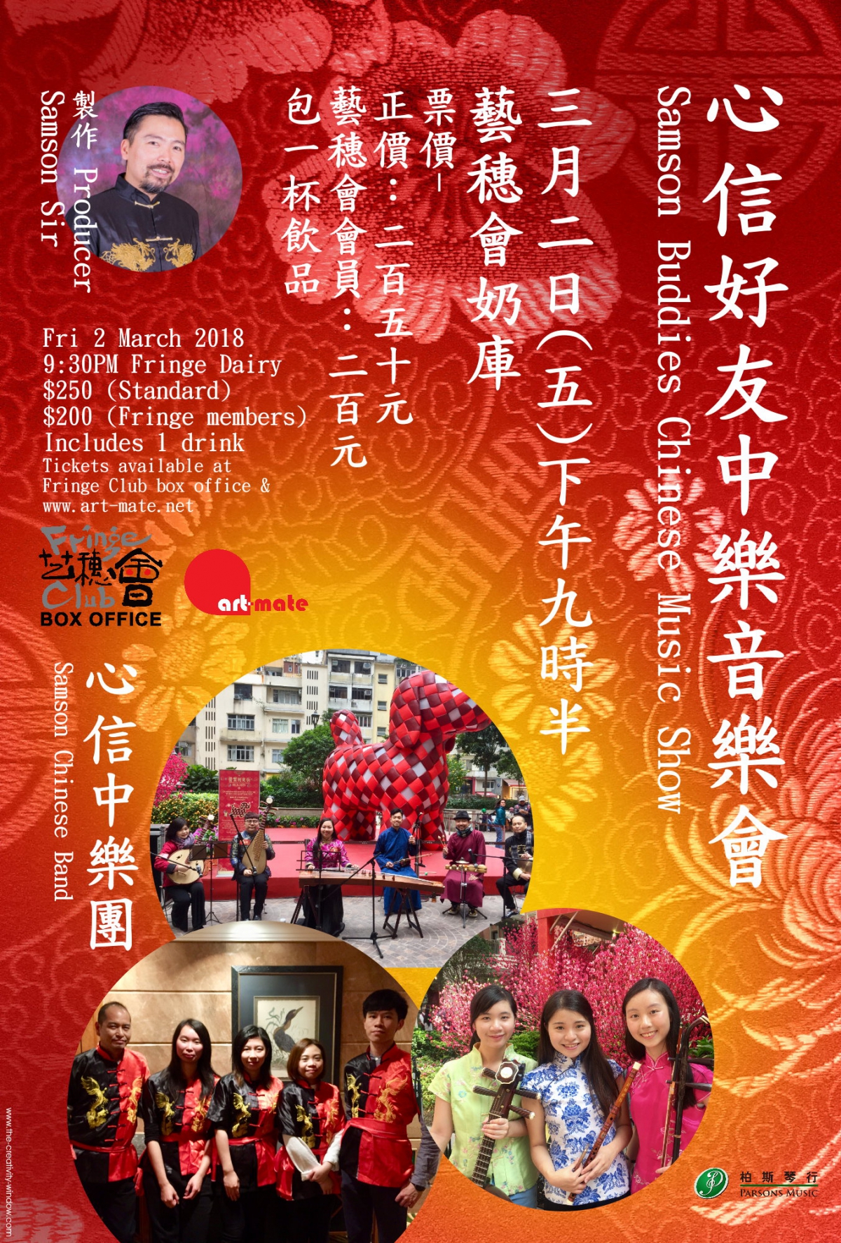 由音樂製作人 Samson Sir 與 Bass Siu Yu 統籌,名為 心信好友 的音樂文化交流音樂會,集合 Samson Sir 多才多藝的朋友一起分享我們最喜愛的樂隊音樂!另外邀請不同年齡風格的音樂朋友樂隊在Fringe Club演出,希望近距離同大家用不同樂器及音樂風格分享一個又一個愉快的晚上。今次好榮幸邀請到多位中樂的朋友為大家帶來一個充滿傳統新春中樂的晚上。