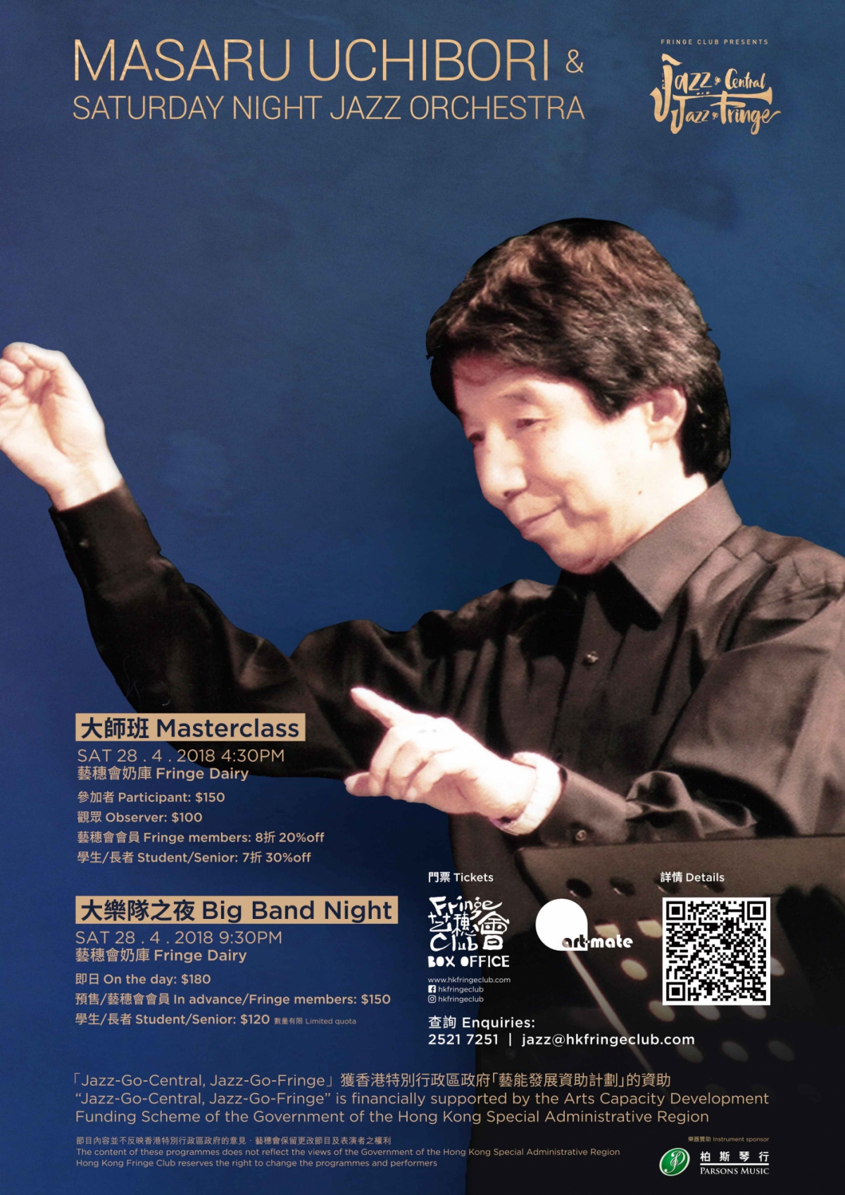 爵士大師班是「Jazz-Go-Central, Jazz-Go-Fringe」的節目之一,由藝穗會及星期六爵士大樂隊統籌。樂隊邀請了來自日本的大樂隊編曲大師 内堀勝 為大樂隊成員進行指導,教授大樂隊編曲技巧。