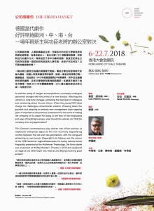 一齣以辦公室政治為題的德國當代戲劇,傳統企業在新經濟時代來個大翻身,刻劃上班族新舊思想的衝突,掀起一場老忠臣捍衛之戰。編劇魯茲.胡伯納於1998 年曾獲德國青少年劇場獎,其作品充滿諷刺和黑色幽默,並多次獲邀參與慕海姆戲劇節。此劇曾於兩岸三地多次登場,包括2015 年本團讀戲劇場、2016 臺北藝術節及北京公演,均極受好評!