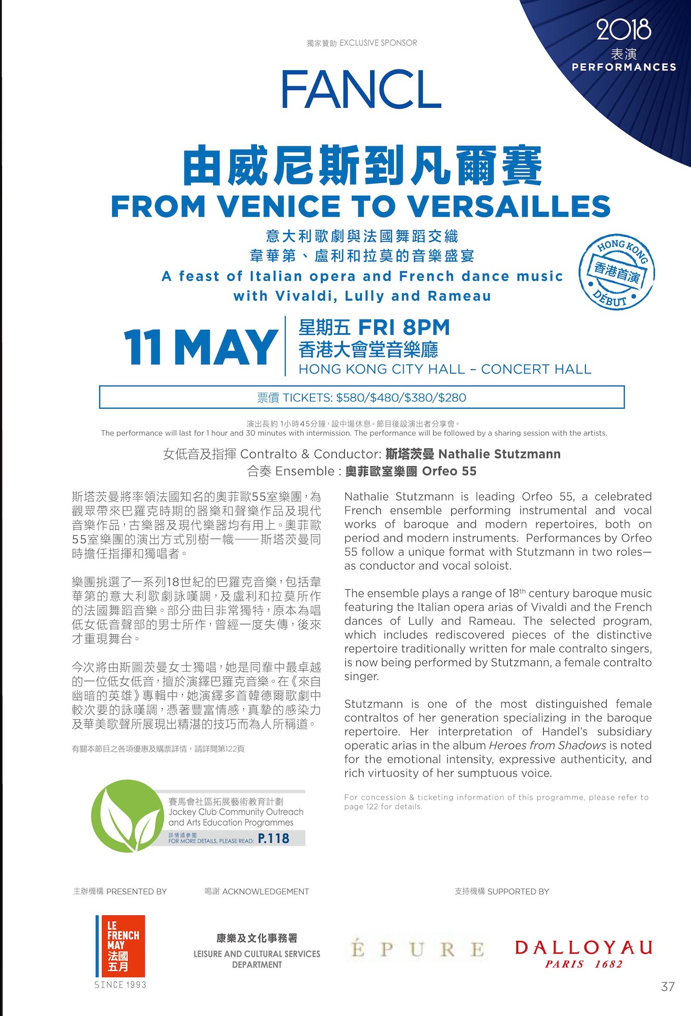 斯塔茨曼將率領法國知名的奧菲歐55室樂團,為觀眾帶來巴羅克時期的器樂和聲樂作品及現代音樂作品,古樂器及現代樂器均有用上。奧菲歐55室樂團的演出方式別樹一幟—斯塔茨曼同時擔任指揮和獨唱者。