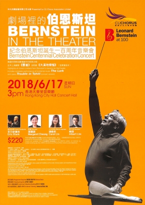 合唱團專誠邀請美國指揮家艾力史達克再度合作,為是次演出執棒。音樂會將會演出伯恩斯坦為劇場創作的合唱曲,選曲分別來自輕歌劇《坎第德》、音樂劇場《彌撒曲》,更足本演出劇樂《雲雀》及歌劇《大溪地煩惱》。此外也會演唱他的早期作品,包括他的第一部作品--《詩篇148》(女聲獨唱)。