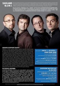 銅光泛音,清耳悅心;裊裊餘韻,色士寧人。法國首屈一指的哈巴涅拉色士風四重奏將與香港城巿室樂團聯手獻藝。這場音樂會是法國五月藝術節特備節目。既有法國音樂,亦有土耳其作品,還有充滿探戈色彩的音樂瑰寶。曲目包括費利•費蘭充滿浪漫感的《色士寧人》、皮亞梭拉那煙霧迷濛散發著性感、為室樂團而寫的三首樂曲,以及費茲•薩爾為色士風四重奏及弦樂組而寫、帶著異國風情的四首前奏曲。如此豐富的音樂盛宴,您又怎能錯過?