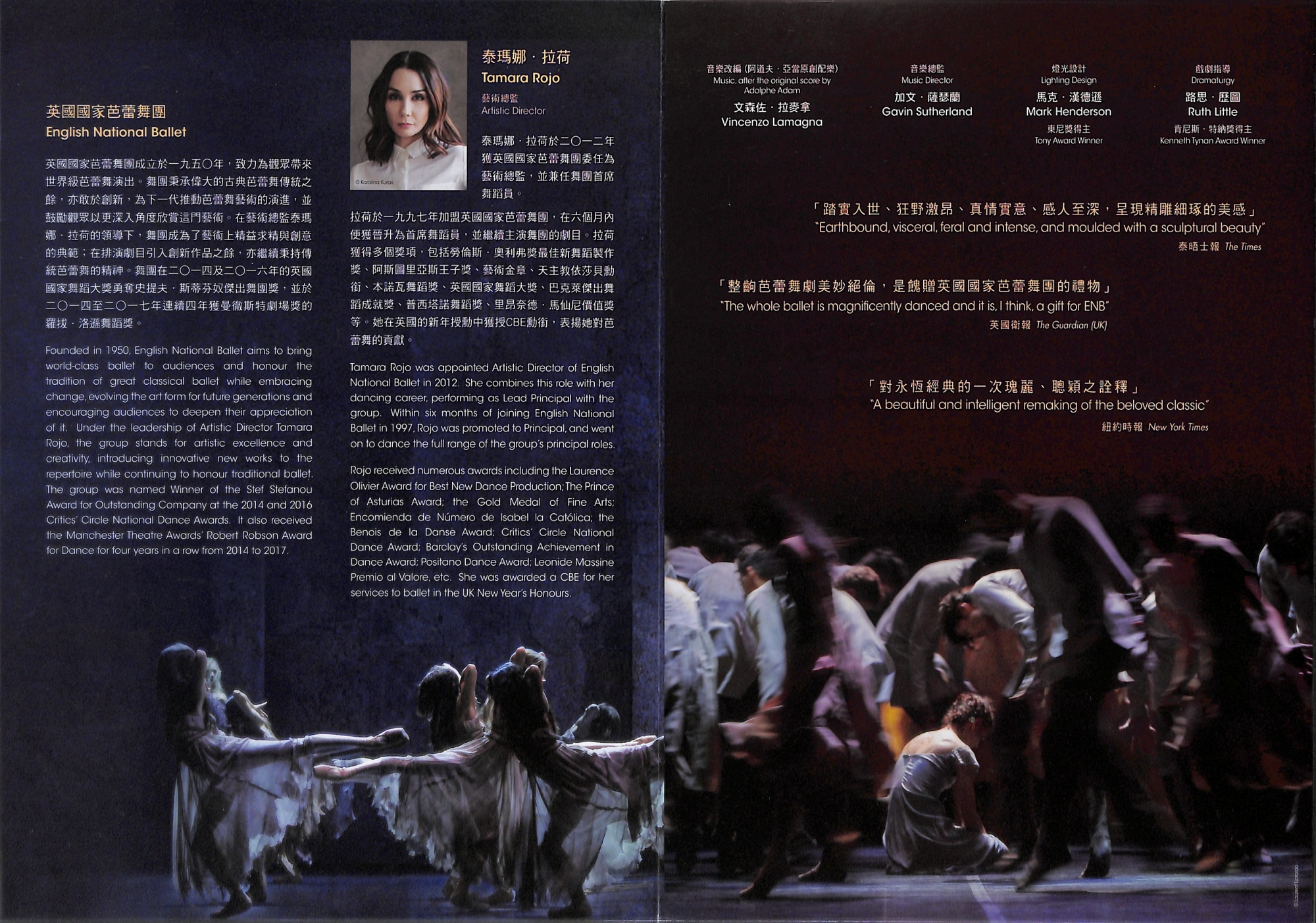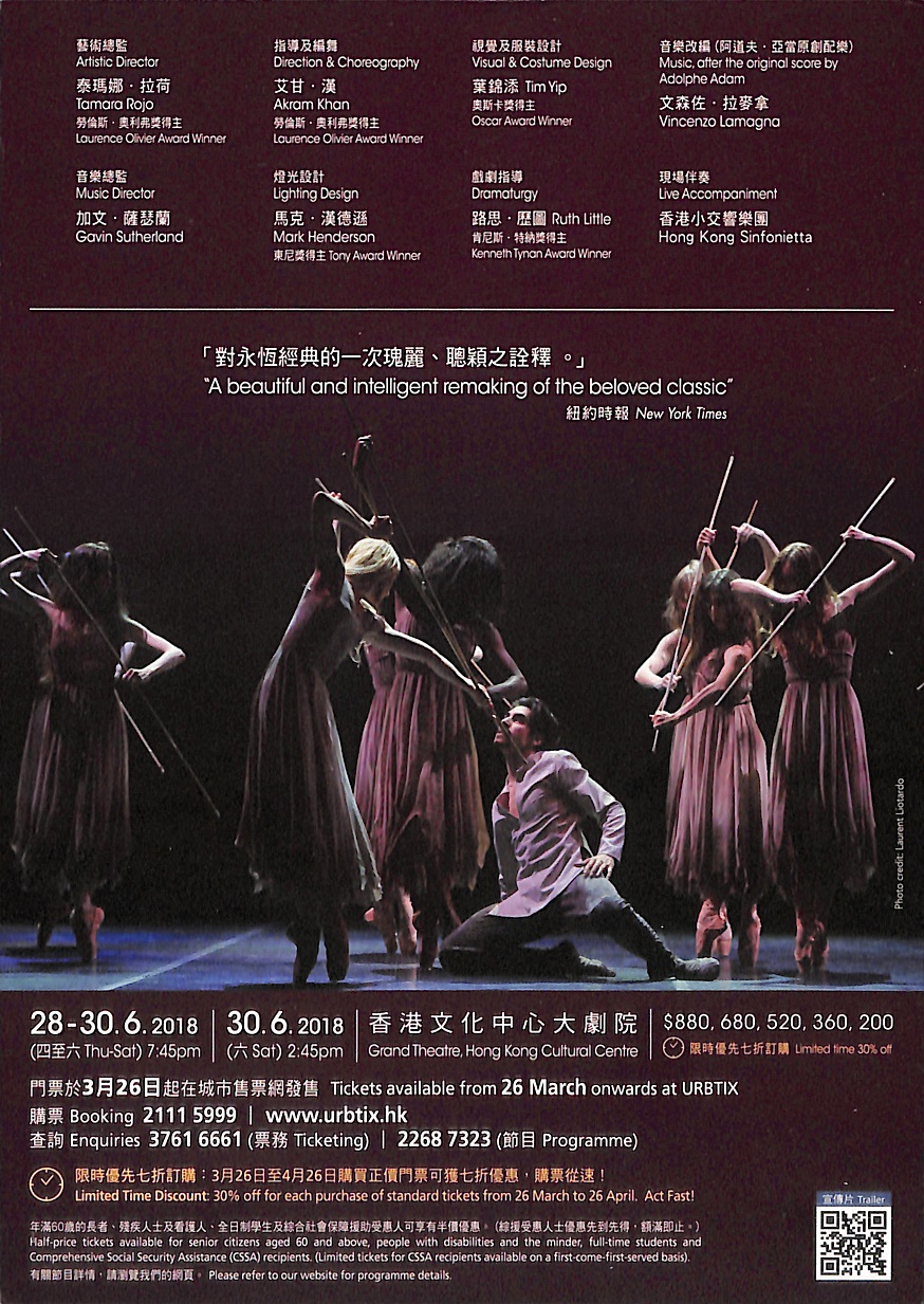 圍繞愛情、背叛與贖罪譜寫的經典故事,配以奧斯卡金像獎獲獎設計師葉錦添(《臥虎藏龍》)創造的華麗服裝和舞台、作曲家文森佐・拉麥拿為阿道夫.亞當原創配樂的改編、路思・歷圖的戲劇指導,以及東尼獎得主馬克.漢德遜的燈光設計,為觀眾帶來耳目一新的演繹。