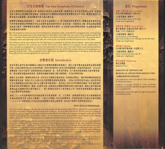 楊曉宇善於獨奏、樂團演奏和合奏,是位多才多藝的全能演奏家。在兩場音樂會上,楊氏將會聯同香港管弦樂團中提琴首席、香港土生土長的泛亞交響樂團客席指揮凌顯祐,一同為大家帶來精彩演出。凌氏將帶領泛亞交響樂團演奏西貝流士的《D小調小提琴協奏曲》。西貝流士是位生於芬蘭的作曲家,由於他的創作經常取材自其祖國歷史、傳說、民謠等元素,因而成為芬蘭最重要的民族主義作曲家。他的小提琴協奏曲被譽為最具挑戰性的小提琴曲目之一,除了對獨奏者技巧上要求極高之外,同時亦需要展現出芬蘭民族主義音樂的特色與風格。