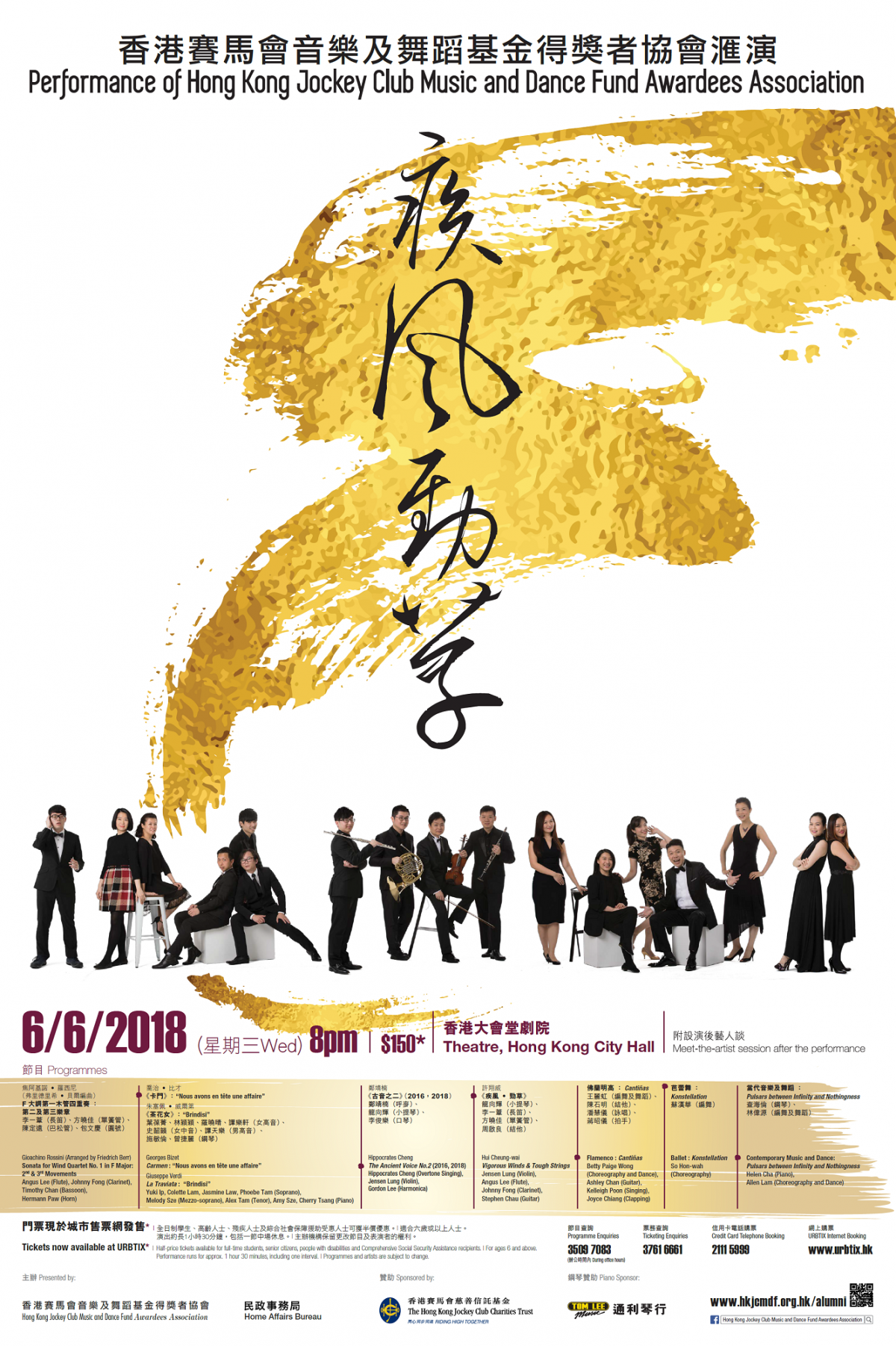 香港賽馬會音樂及舞蹈基金得獎者協會一直致力推廣本地音樂及舞蹈的發展,並為歷屆獎學金得主提供展現才華的平台。協會將與超過 20 位本地優秀音樂家及舞蹈家攜手呈獻盛大滙演《疾風勁草》,精心炮製 7 個風格獨特的節目,向觀眾展示香港音樂及舞蹈的多元面貌。