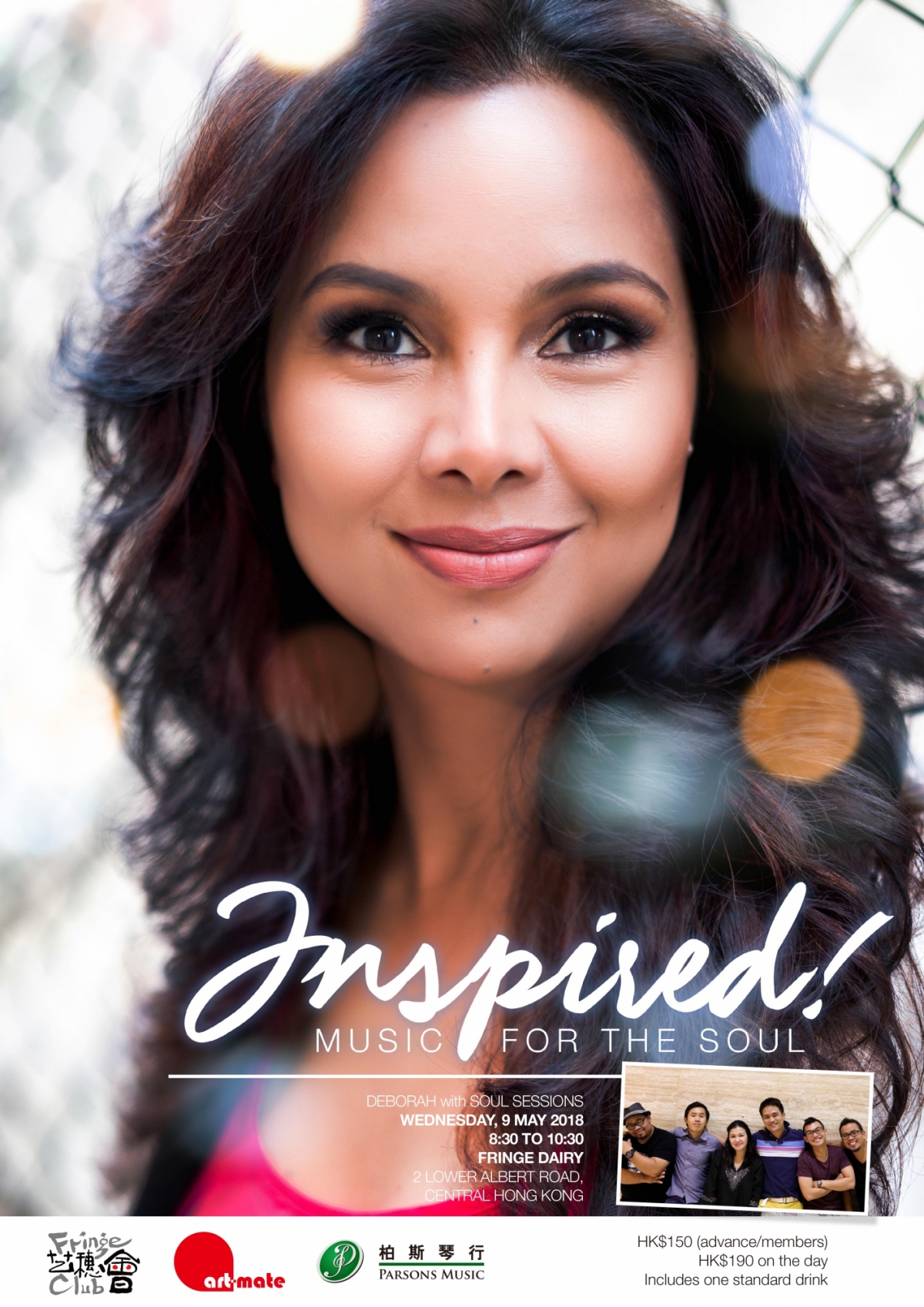 相信香港人對Deborah一點也不陌生,她既多才多藝,又以她歌唱的才華和情感化的聲綫而聞名。 多年來她與爵士樂隊,Syzygy Hong Kong一起演出,此外她還是一位出版社的詩人和歌手/作曲家。是次音樂會首次推出她的專輯Inspired(勵志一生)。 她將以獨特的風格具創意性地演繹出Agnes Q和Soul Sessions的作品. 希望大家一起來準備迎接一個令人興奮、充滿著希望,渴望及挑戰性的音樂盛會。