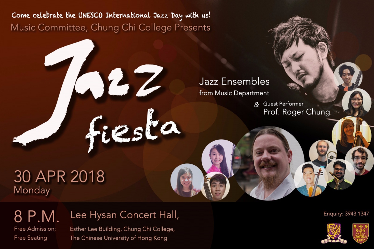 香港中文大學崇基音樂委員會將於聯合國教科文組織(UNESCO)訂立的「國際爵士日」4月30日(星期一)晚上舉行爵士樂音樂會,並邀得音樂系爵士樂小組及鍾一諾教授演出。歡迎任何人士參加是次音樂會! https://www.facebook.com/events/643080689369328/