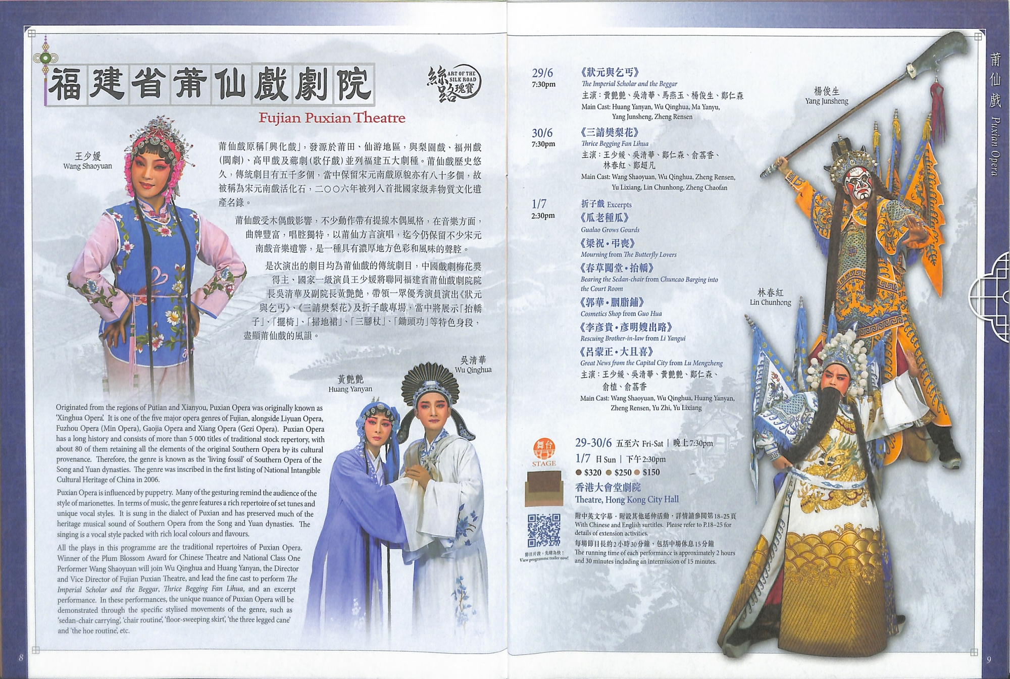 莆仙戲原稱「興化戲」,發源於莆田、仙游地區,與梨園戲、福州戲(閩劇)、高甲戲及薌劇(歌仔戲)並列福建五大劇種。莆仙戲歷史悠久,傳統劇目有五千多個,當中保留宋元南戲原貌亦有八十多個,故被稱為宋元南戲活化石,二○○六年被列入首批國家級非物質文化遺產名錄。