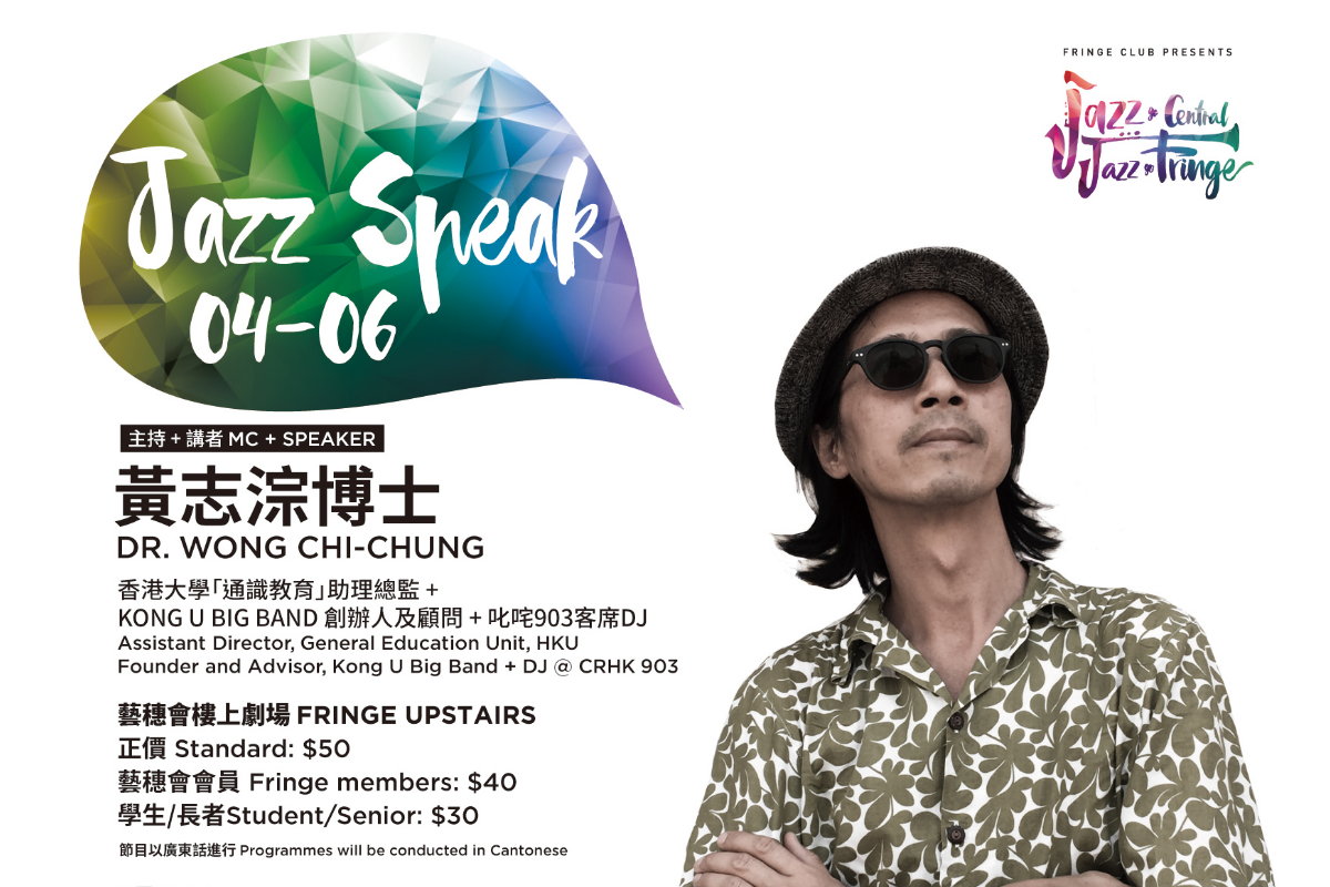 由藝穗會主辦,JazzSpeak是「Jazz-Go-Central, Jazz-Go-Fringe」中的第一期爵士樂青少年實習計劃的培訓項目。 除了為實習計劃的參加者提供培訓外,講座亦歡迎公眾參加。