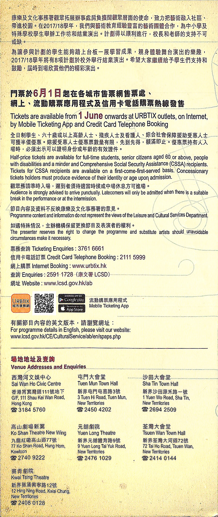 演出同學將與公眾分享學習成果,演後設分享環節,讓同學與觀眾有交流機會,分享創作過程及演出感受等。