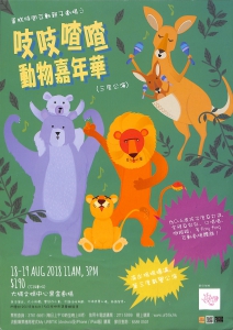 《吱吱喳喳動物嘉年華》 由蛋糕姐姐和落雨姐姐帶領兒童到動物王國探險,讓兒童近距離接觸多首古典名曲、原創兒歌及童謠。本劇打破傳統音樂劇場的框框,全程以生動且多元化的互動型式進行,不用兒童坐著安靜觀賞,鼓勵他們在演出過程中擔當小主角,盡情投入地以歌聲、說話、節奏擊拍、樂器、道具、動作,讓每一位兒童也可在無限童真與歡笑聲中享受音樂戲劇的薰陶。