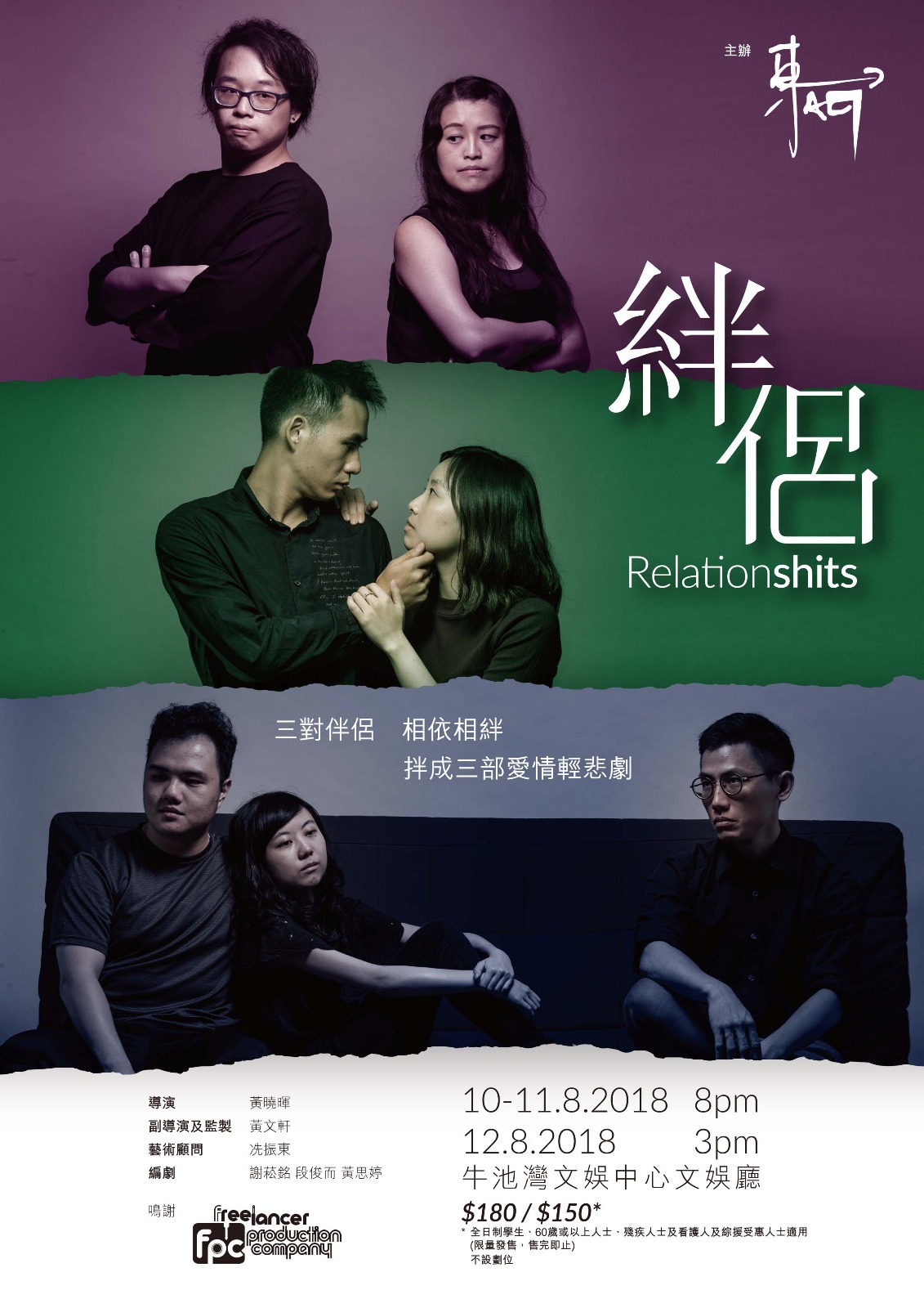 愛裡不分你我,我個腎啱你,求之不得捐畀你。談情不是談錢,拜金女膚淺,男人不窮我不愛。愛是愛你內在,外在多塊肉,遲早都可以克服。三對伴侶 相依相絆 拌成三部愛情輕悲劇睽違兩年,東ACT《安樂.死?》過返生,帶著新《絆侶》重遊牛池灣,上回渡生死,今趟共愛恨。購票表格:https://goo.gl/forms/8bovO1VpL4A28pRD3不設劃位粵語演出本節目含不雅用語,只招待12歲或以上人士,敬請留意