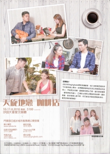 2015年Singingholic爆笑浪漫劇目,加入全新瘋狂組合於今年重新搬上舞台。故事圍繞咖啡店女店主與她那消失的男人、鬥氣男女侍應、靚模與宅男太子爺、盛女與收機男、還有神秘外星人、江湖術士等等之間發生的故事。愛的意義,對於每個人都不同,你又能在天旋地戀咖啡店內,看到怎樣的愛情呢?