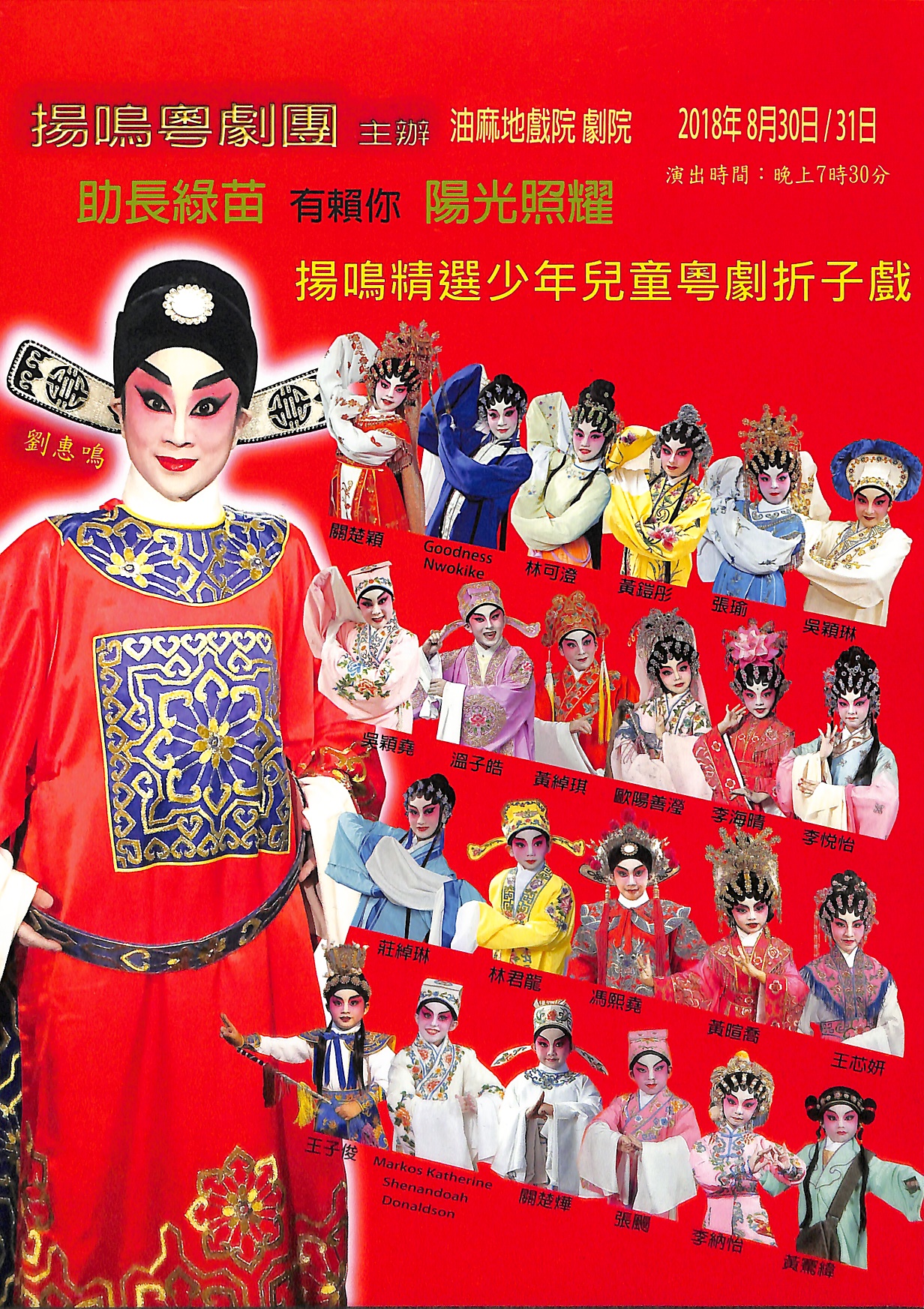 折子戲戲碼:《百戰榮歸迎彩鳳》《鳳閣恩仇未了情》《牡丹亭驚夢之幽媾》《龍鳳爭掛帥之洞房》《庵遇》《游龍戲鳳》 《三岔口》《夢會太湖》 《紫釵記之拾釵》 《大鬧廣昌隆》 《紅了櫻桃碎了心》《七月七日長生殿》《三看御妹劉金定》