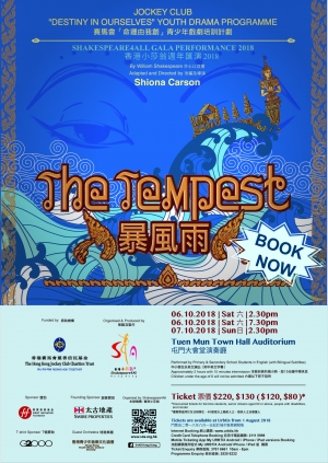 香港小莎翁呈獻, 莎士比亞經典劇目《暴風雨》,由超過80位小演員及管弦樂團參與演出,夏頌寜導演。劇中透過魔幻、木偶、舞蹈,配以70年代傳奇搖滾樂隊Led Zeppelin的歌曲 貫穿起整個故事。一個前所未見的《暴風雨》即將發生於1850年暹羅沿岸一個神秘的島嶼。這將會是一個引人入勝之旅。此經典文學故事定能為觀眾帶來鼓舞人心的難忘體驗。