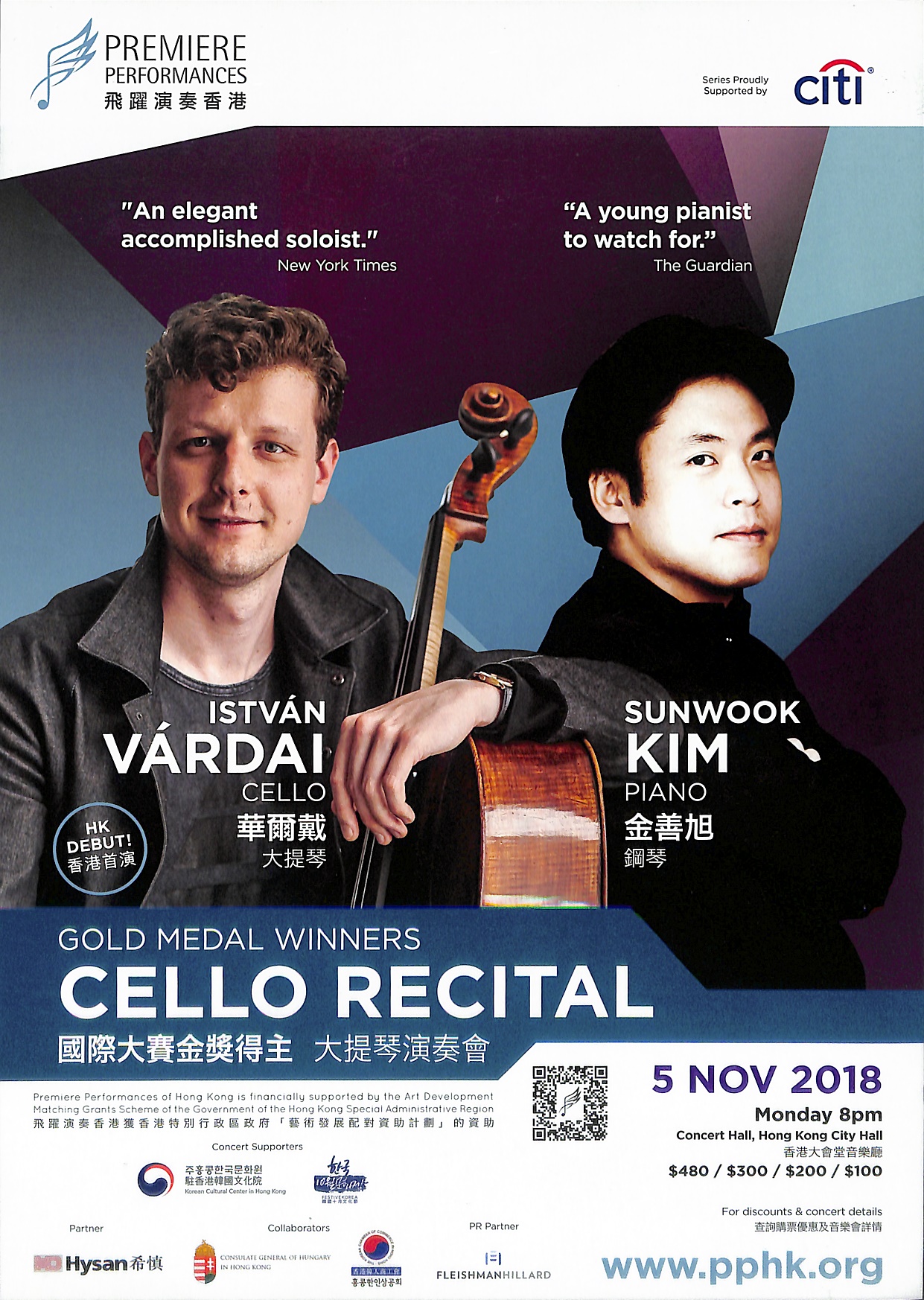 感受兩位國際大賽金獎得主令人目不暇給的技藝。華爾戴(大提琴)及金善旭(鋼琴)將攜手帶來一場精彩絕倫的大提琴及鋼琴金曲之夜。華爾戴是當今世上唯一一位大提琴家,同時贏得2008年瑞士日內瓦國際大提琴比賽及2014年德國慕尼黑國際音樂比賽,兩者均為大提琴界最重要的大賽。於2000年,華爾戴更獲Prix Montblanc選為全球最佳新晉古典音樂家。金善旭自2006年贏得英國利茲國際鋼琴大賽後,於國際舞台嶄露頭角,當年他只有18歲,是該比賽40年來最年青的優勝者。