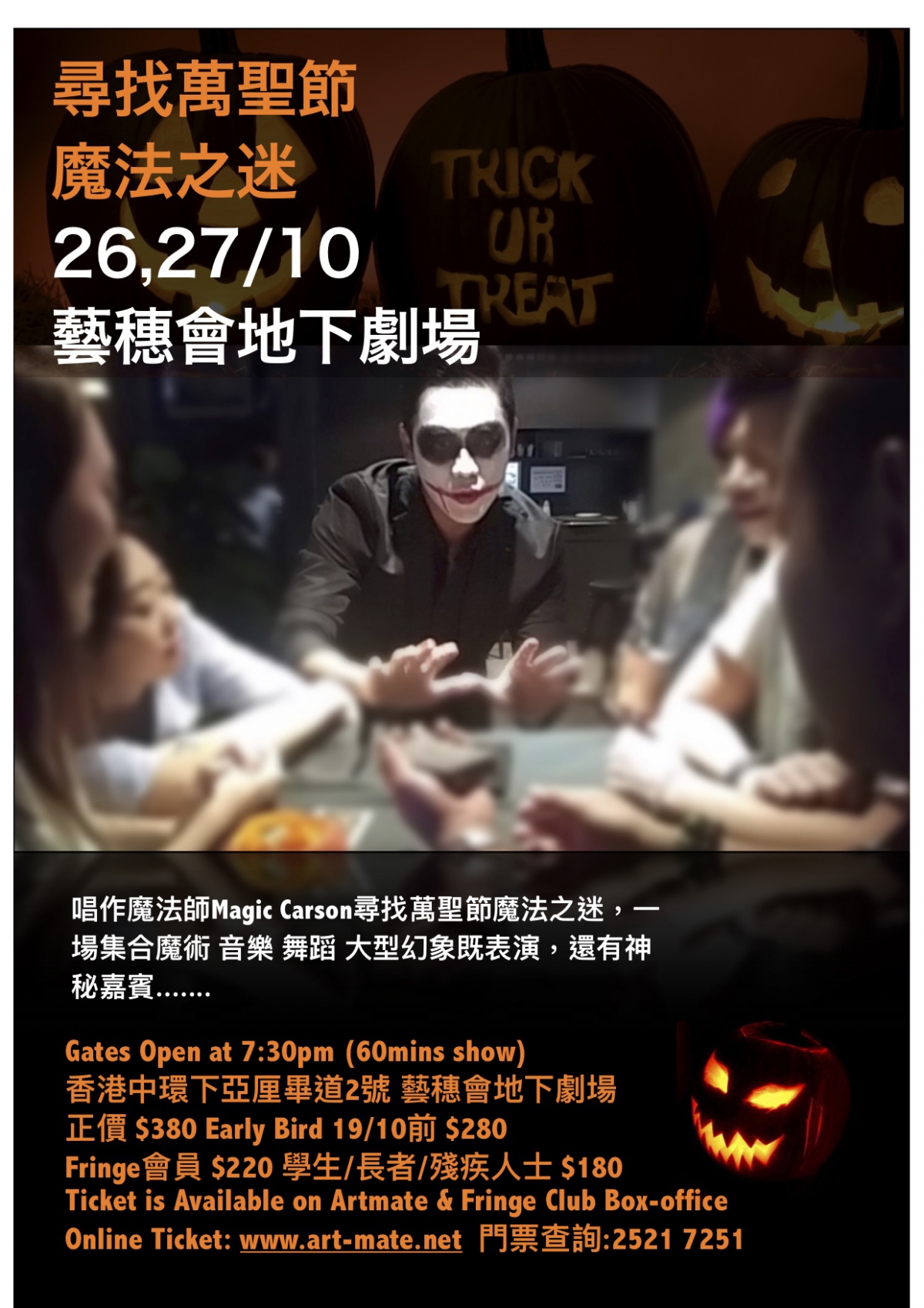 *節目類別:魔術表演*語言:中文*年齡限制:節目帶有恐怖內容,建議12歲以上人士觀看*節目時間長度:75分鐘 (沒有中場休息)