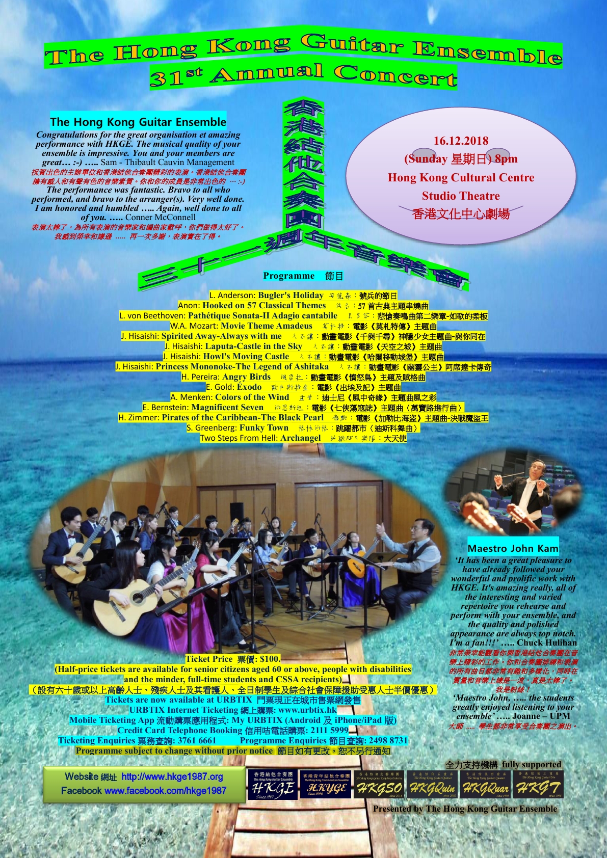 大部份國外和國內認識香港結他合奏團的結他同業都給予我們以上的評價。但每次和新認識的觀眾交談時總是說從沒有聽和不知道結他合奏有這麽高的可聽性。〈原因很簡單,那是我們將結他合奏團作交響化後的結果;所有縱橫交錯和垂直結合的音響都得到有效分佈和擴充,更富層次感和具立體聲效果。〉