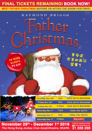 聖誕老人一年之中最繁忙的日子-平安夜即將來臨,快來和聖誕老人一起迎接這重要的一天,看他準備聖誕禮物丶餵飼他的馴鹿拍擋,並駕著雪橇,劃過充滿白雪的夜空 。 齊來欣賞美妙的現場音樂和歌曲,以及俏皮生動的木偶劇!這溫馨動人的音樂劇的歌曲優美愉快,更有搞鬼有趣的木偶表演,以及機關重重丶華麗神秘的舞台設置,絕對是初看戲劇的幼兒的最佳入門劇!歡迎父母帶同家中2歲至6歲的小孩享受這完美的節日盛事!