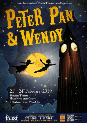 Faust International Youth Theatre is very proud to announce its 20th Anniversary theatrical production of Peter Pan & Wendy, performed by our young and talented actors and actresses aged 8 to 18 from February 21st to 24th at Shouson Theatre, Hong Kong Arts Centre.