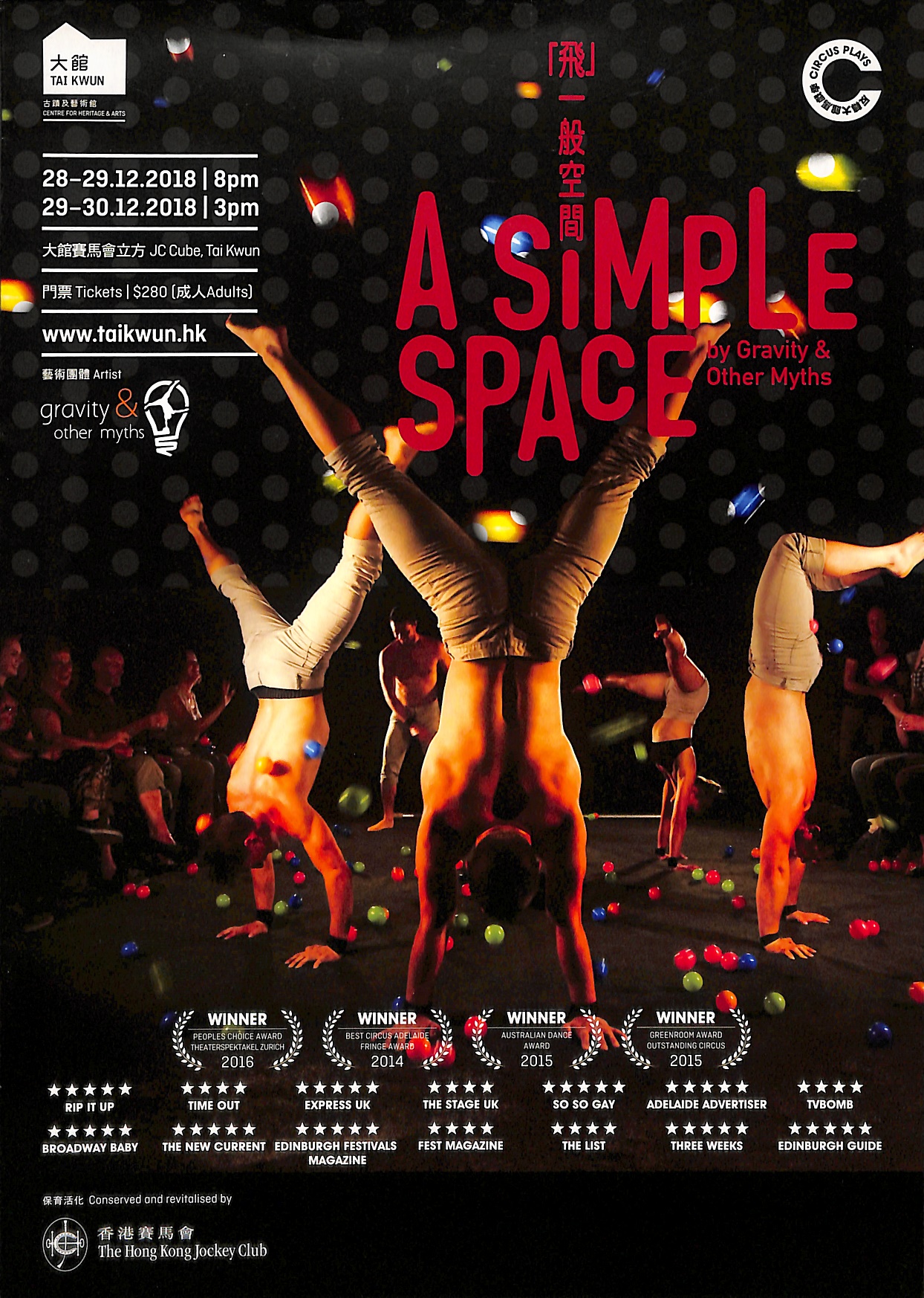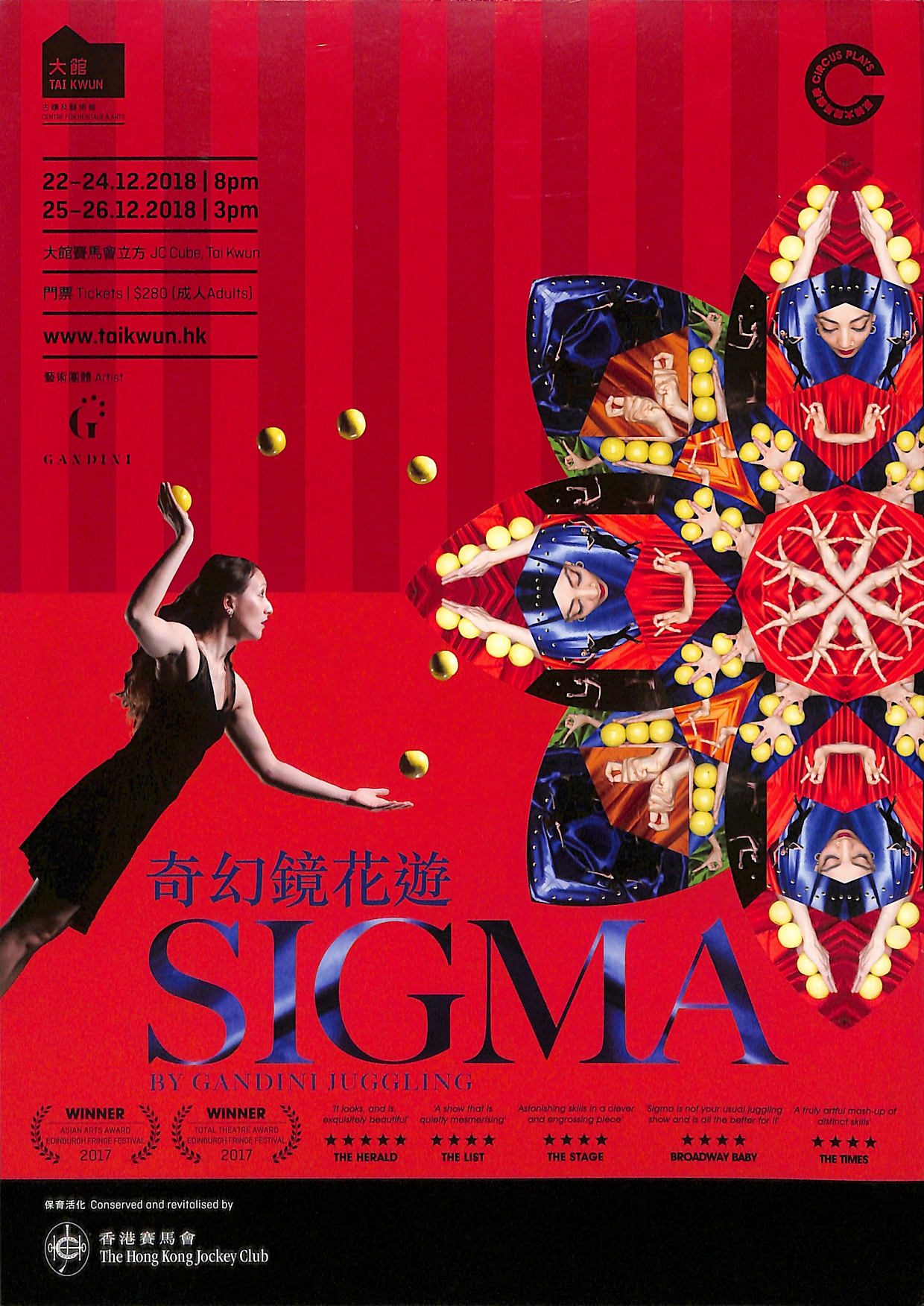 雜技、幾何學與傳統印度舞蹈有什麼共通點?Gandini Juggling的《奇幻鏡花遊》將三者渾然天成融合,叫大人和小朋友在謎樣世界中嘖嘖稱奇。獲獎無數的編舞家Seeta Patel 將雜耍融入南印度的傳統婆羅多舞蹈,加上誘人的敲擊樂、多媒體投影佈景和皮影戲、有趣的鏡像、讓人驚嘆的圖案,營造豐富多彩的演出。表演者遊走於充滿想像的民俗儀式中,以形體動作跨越文化障礙。Gandini Juggling 向來熱愛並敢於創新及挑戰跨藝術形式合作,曾獲2017年愛丁堡國際藝穗節總劇場獎(Total Theatre Award)及亞洲藝術大獎(Asian Arts Award)。