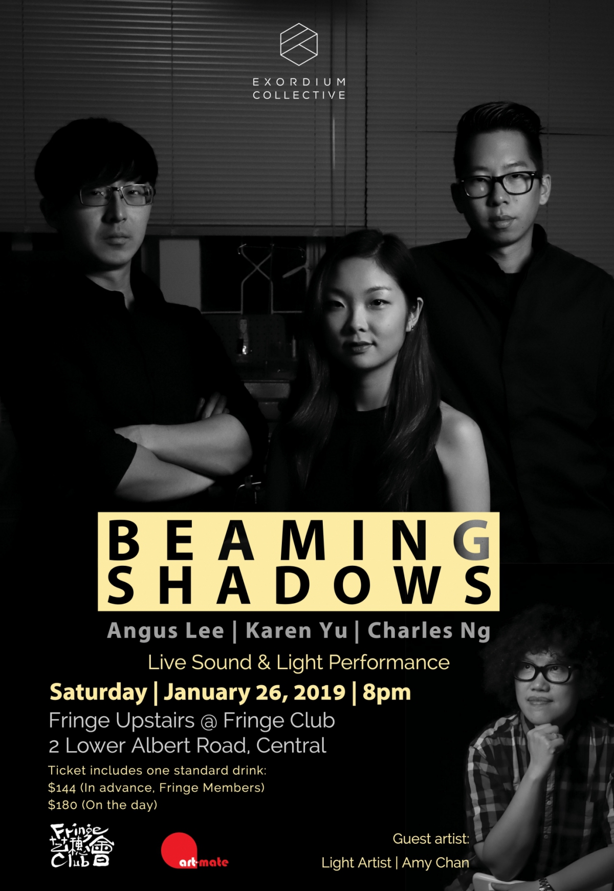 Exordium Collective (“ExCo”) 即將於藝穗會呈獻音樂會 “Beaming Shadows”(發光的陰影)。表演長約一小時,音樂表演者的身體姿勢與節奏將會無間斷地與現場電子音樂配合,從中探索光影對比,為觀眾呈現一個猶如黃昏般的影子。