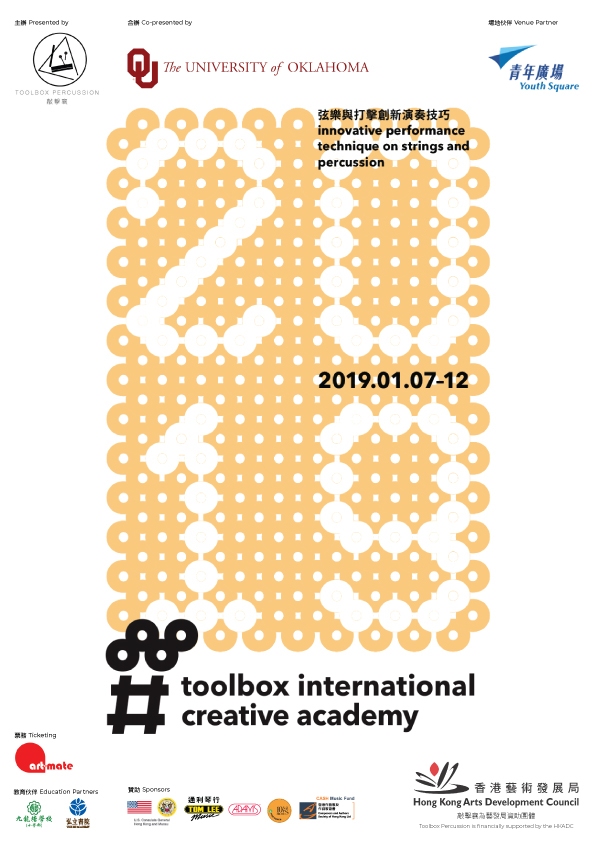 第一屆國際共襄創意學院(Toolbox International Creative Academy, TICA)將在2019年1月7日至12日於香港舉行,我們將探索弦樂和打擊樂的創新表演技巧。TICA是香港藝術團體敲擊襄及美國俄克拉荷馬大學聯合主辦,與香港教育大學及青年廣場協同辦理的年度活動,來自世界各地的學員一同參加音樂訓練課程。本屆共襄創意學院以打擊及弦樂為主軸,辦理一系列工作坊、大師班、論壇以及音樂會等活動,等您一同探索和享受。