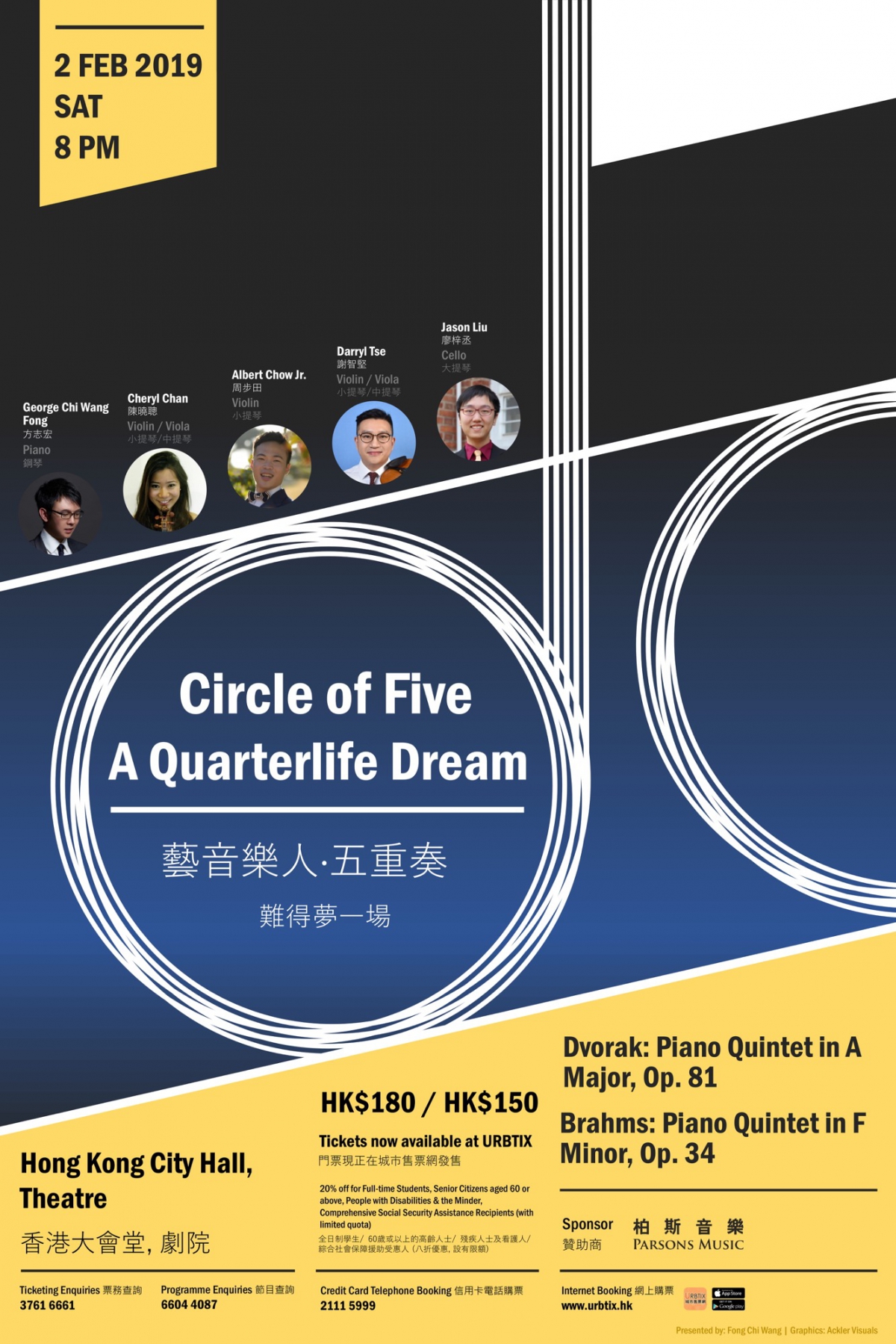 一個高速運轉的城市裡, 時代的巨輪逼使許多人放棄自我, 去趕入世的路。然而,在巨輪當中,總會有幾顆赤子之心,憑著一股熱誠,一面向前奔跑,一面尋找昨日的真我。一位金融人,一個行政主任,一位醫生,一個獸醫和一位建築畢業生,在琴弦的震動中聚在一起,期望在荒漠追趕的路上,稍稍取暖…二月初春的晚上,你願意和他們分享羅曼蒂克的鋼琴五重奏,聆聽他們非音樂人的音樂人生嗎?節目:德伏扎克: A 大調鋼琴五重奏,作品八十一布拉姆斯: F小調鋼琴五重奏,作品三十四