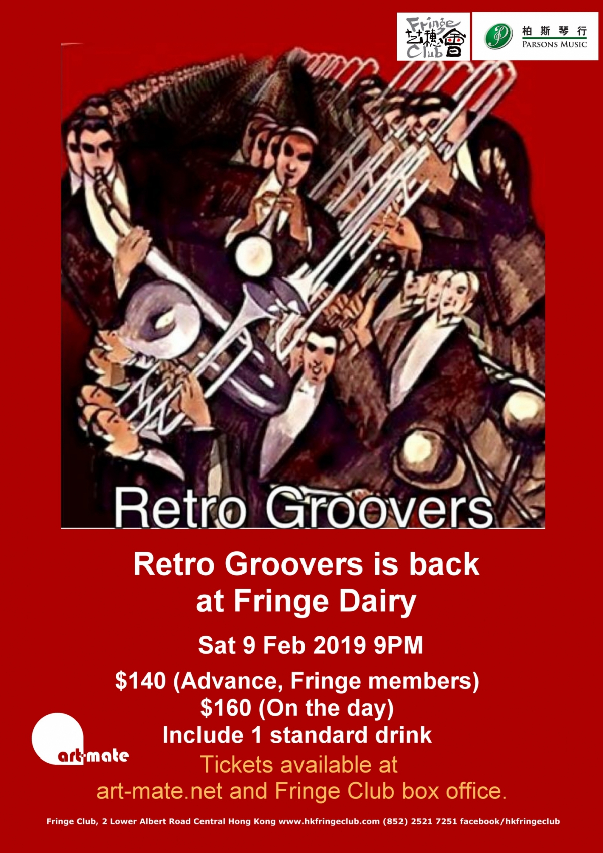 Retro Groovers - 一隊集融合爵士、R&B、放克、搖滾、搖擺及80年代耳熟能詳之的士高和跳舞音樂的樂隊,將會以一連串不同樂種的音樂娛樂大家,讓聽眾回到盛行管樂及的士高跳舞音樂的80年。