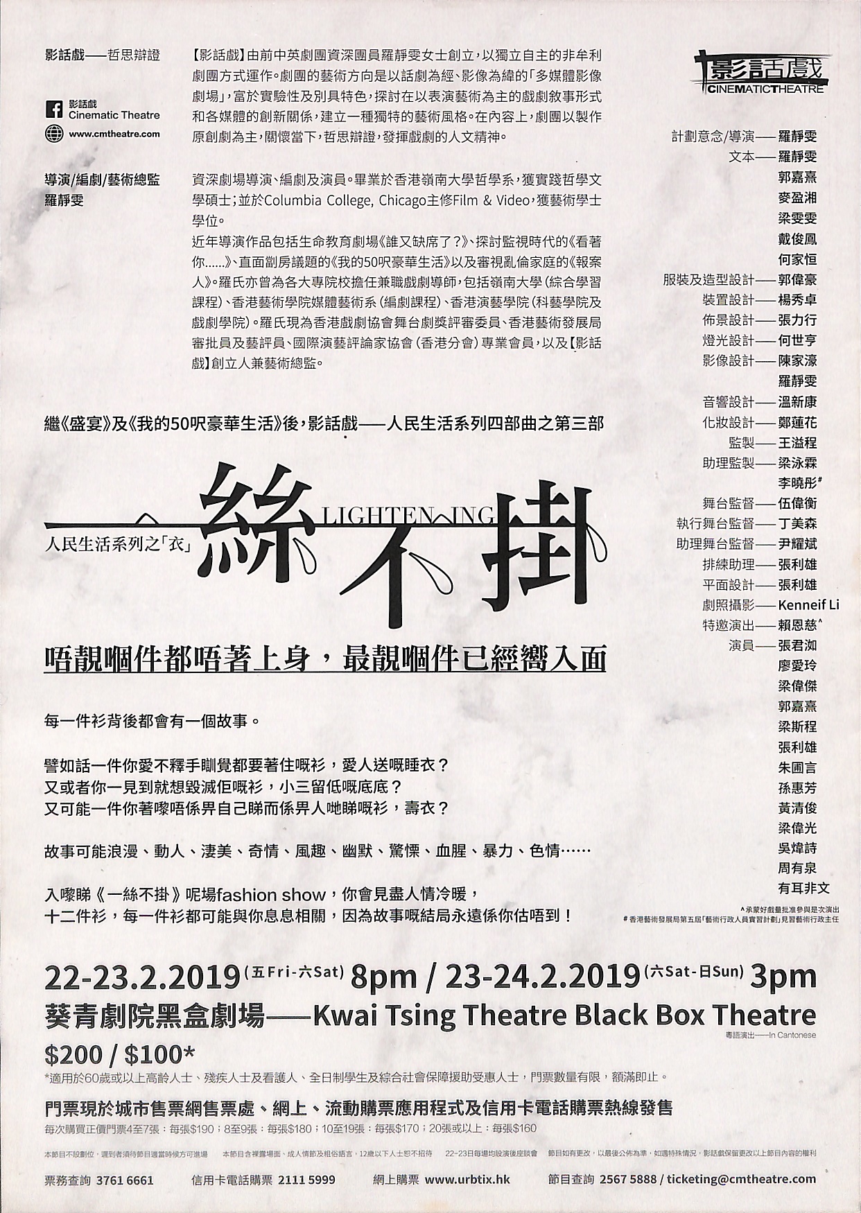 繼《盛宴》及《我的50呎豪華生活》後,影話戲─人民生活系列四部曲之第三部「一絲不掛」