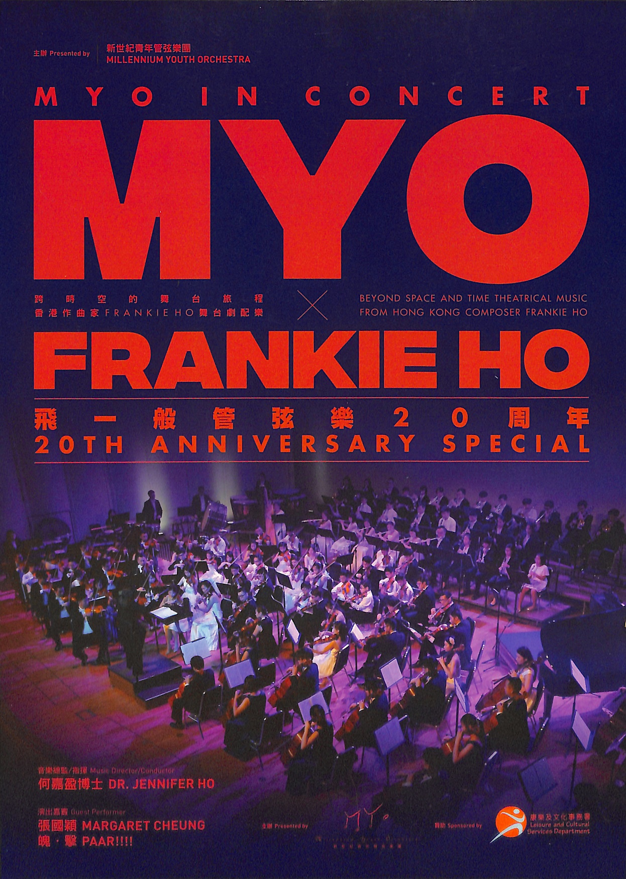 Millennium Youth Orchestra (新世紀青年管弦樂團) 20週年重頭戲,本地殿堂級劇場音樂人 Frankie Ho X MYO 攜手演奏飛一般的管弦樂,帶領觀眾踏上跨時空舞台之旅。音樂會將會演奏多首來自 Frankie Ho 的話劇配樂及音樂劇選段,包括《科學怪人》、《惡童日記》、《培爾·金特》、《少女夢》、《異型金剛》、《戇大人》及更多!