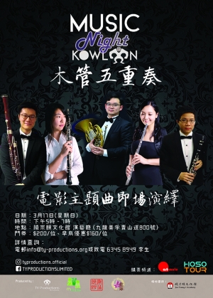 由謝家儀 Renneih (長笛 Flute)、羅曉桐 Abbie (雙簧管 Oboe)、呂家俊 Chris(單簧管 Clarinet)、鄭榮光(巴松管 Bassoon)及何雋文 Jermy (法國號 French Horn) 將施展渾身解數,為一家大細獻上一場包攬香港、國外電影主題曲的音樂會。各位想現場聽到《追》、《無間道》、《星語心願》、《獅子山下》等的經典電影、電視的經典樂章,記住買飛喇!