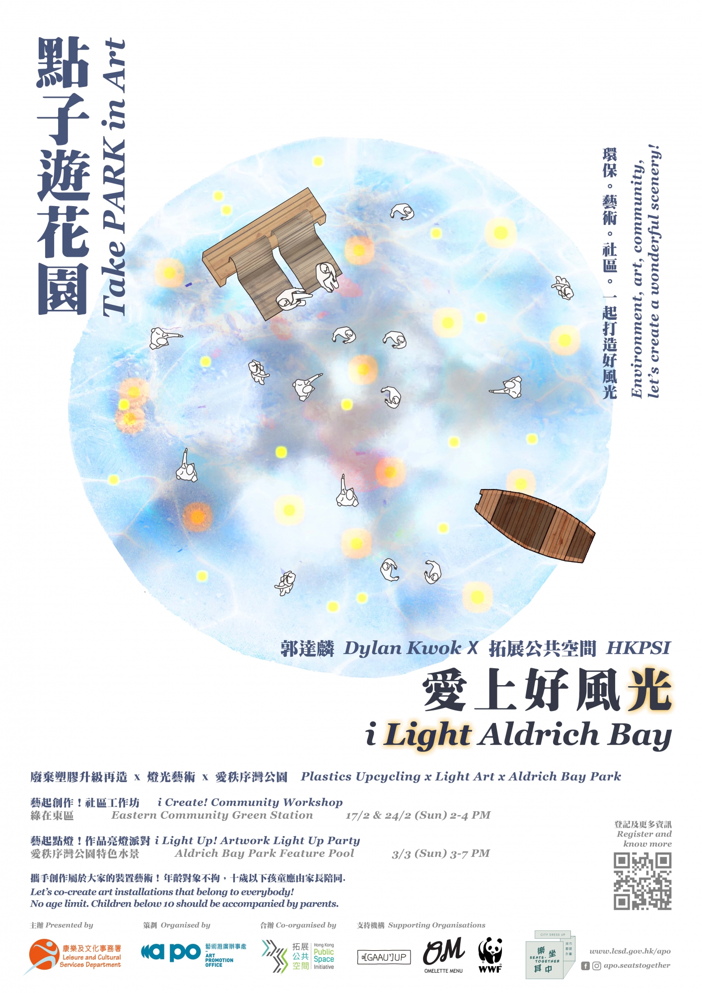 是次活動是藝術推廣辦事處「城市藝裳計劃:樂坐其中」的項目之一。「拓展公共空間」早前伙拍本地藝術家郭達麟,舉行了兩場社區藝術工作坊,讓街坊著手創作公共藝術。活動以廢棄塑膠、回收玻璃瓶,配合再生能源,製作出環保藝術燈光裝置,旨在把海洋垃圾升級改造成可燃亮社區及提醒市民關注海洋污染的創作。亮燈派對當天將有GAAU1 UP的升級塑膠實驗室,教市民分類塑膠,親嘗升級再造藝術,亦有本地樂隊The Flame、Spirit、Horizon、Miss Poon Poon的現場音樂表演、世界自然基金會的太陽能流動咖啡車和Omelette Menu的健身與美食教室。