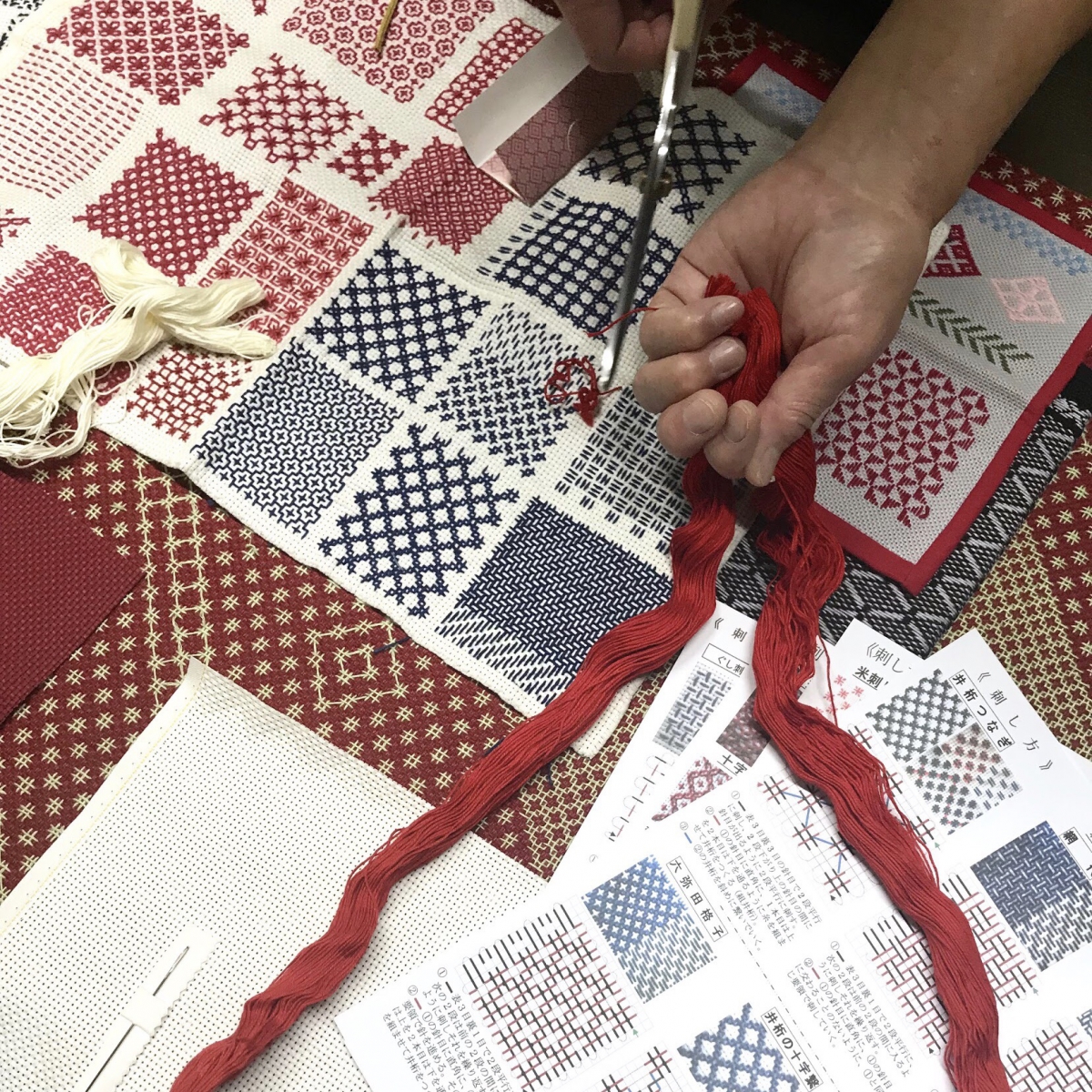 學習古代日本人用來修補或強化布料的刺子藝術,以行針繡出不同幾何圖案。