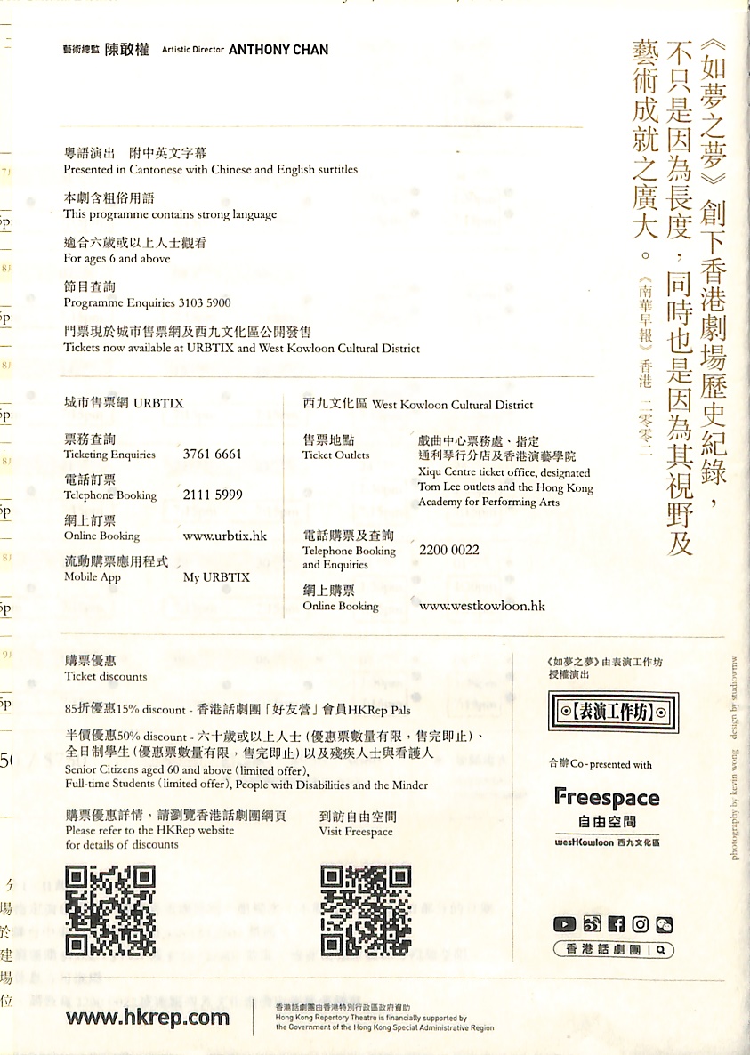 「看過的劇場作品早已在千齣以上,當中印象極深的少數至今仍不時纏繞腦際,若然當時錯過了,肯定是重大的遺憾。《如夢之夢》正是這樣級數的演出。」