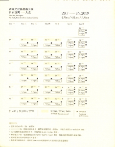 第十九場演出* : 2019年8月29日 晚上7:15 及 2019年8月30日 晚上7:15