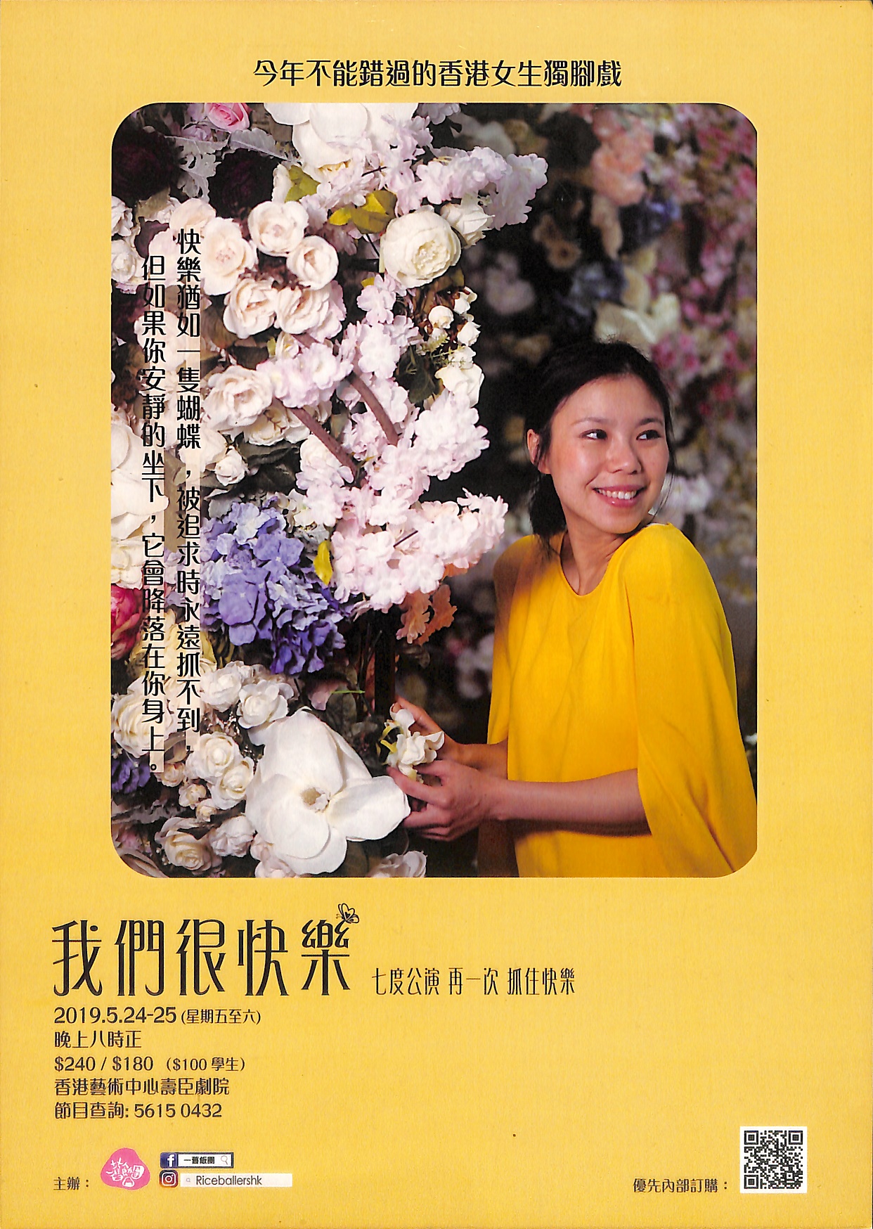 劇中主角Noel Tsang,工作至上致力傳授「快樂竅門」,自命不凡生活講究,是傲慢,是挑剔,卻是大部分人眼中成功獨立的時代女性。一天意外誤闖前男友婚宴,十年年月已蹉跎,終於要坦誠面對自己,毅然啟動尋找快樂之旅 —— 原來快樂不快樂,不過是一種自覺。女生獨腳戲《我們很快樂》六度公演,場場爆滿,感動過千觀眾。今次第七回演出,林珍真繼續一人身兼編、導、演三職,以全新視野共你遊歷快樂國度,與不一樣的Noel Tsang見面,打開每一個你心裡面那道專屬的快樂大門。