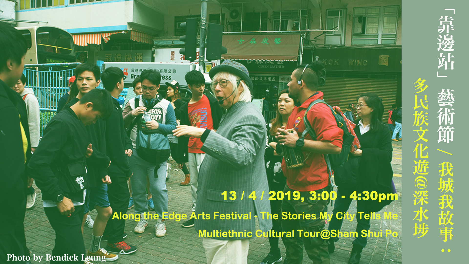 Kaz是熟悉廣東話、英語及尼泊爾文,在香港出生和長大的尼泊爾人。Mok是長年在深水埗生活的香港人。兩人分別由各自的文化脈絡、生活經歷、社群歷史出發,透過今次文化遊帶大家走訪深水埗不同族裔的店鋪、食肆及聚集地。觀眾將從行走與敘說中體驗尼泊爾、泰國、巴基斯坦、印尼的社群文化,亦有機會品嚐小數族裔的美食。文化遊路線:由賽馬會創意藝術中心出發,步行至南昌街,向右轉到福榮街,經鴨寮街返回南昌街,最後以大南街為終點。