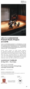 《樂在中大》將帶領聽眾走進香港中文大學校園探索迷人的法國音樂,從浪漫派作曲家佛瑞到普朗克的流行巴黎曲調。鋼琴家潘曉彤,單簧管演奏家何敦文,管風琴演奏家林芍彬丶小提琴家顏嘉俊及宋艾樟,敲擊樂演奏家邵俊傑和《敲擊襄》將聯同香港中文大學音樂系學生演奏一系列的法國室樂作品。