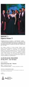 香港歌劇社特別為2019『法國五月』 呈獻「歌劇狂熱「7」音樂會 — 一個集音樂劇和歌劇音樂教育的項目,讓一班『發燒』歌手和演唱家一展才華。曲目多元豐富,充滿火熱和激情。在這場音樂會上,我們將通過奧芬巴赫著名的法國歌劇“霍夫曼的故事”為觀眾帶來激動人心的“旅程”。