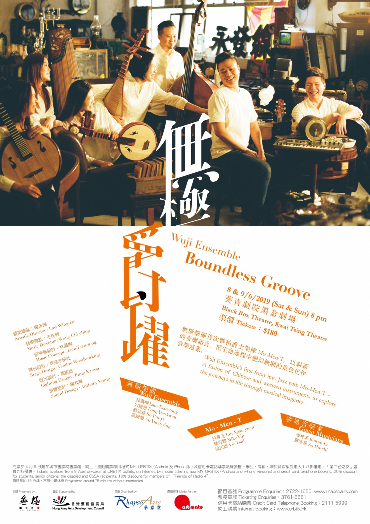 無極樂團首次夥拍爵士樂隊Mo-Men-T,以嶄新的音樂語言,把生命過程中變幻無窮的景色化作音樂意象。門票於4月9日起在城市售票網售票處、網上、流動購票應用程式MY URBTIX及信用卡電話購票熱線發售。