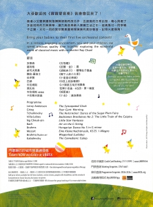 指揮陳穎朗精心挑選了多首悅耳的古典樂章,讓父母與寶寶一起,透過美妙的樂奏打開無窮的想像的天空。既享親子之樂,又可刺激寶寶的感官。
