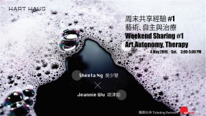 HART Collective 將為您帶來首次週末分享活動〈周末共享經驗 #1 - 藝術、自主與治療〉。系列的頭炮分享環節銳意透過邀請公眾參與一連串的分享和活動,開啓和探索對藝術新的理解:藝術如何賦權,其力量如何發揮治癒的功效。