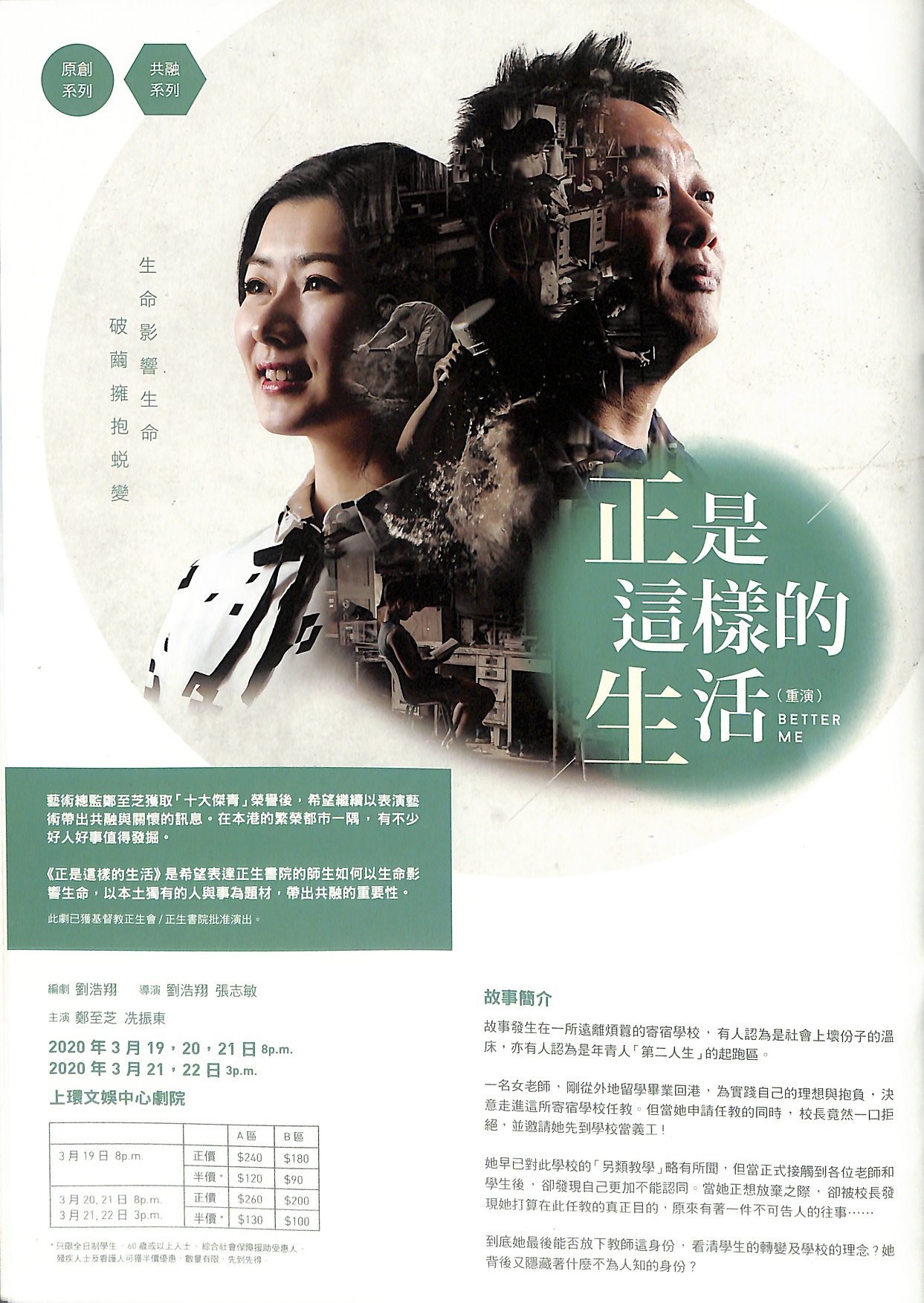 《正是這樣的生活》是希望表達正生書院的師生如何以生命影響生命,以本土獨有的人與事為題材,帶出共融的重要性。