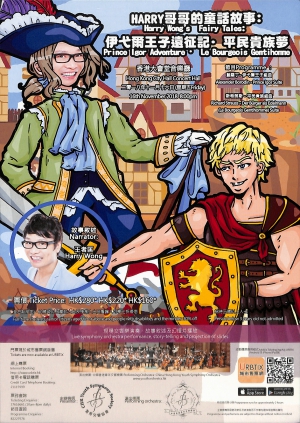 中國香港青年交響樂團將演譯兩個經典童畫故事,帶給小朋友、成人及長者一個難忘及精彩的晚上。 交響樂團將現場演奏著名的鮑羅丁《伊弋爾王子》組曲及 斯特勞斯《平民貴族》組曲, 伴有Harry哥哥的童話故事敍述(粵語旁白)及幻燈片播放。 王者匡(Harry哥哥)是著名魔術師及兒童電視節目主持人,表演以糅合喜劇元素著稱,深受大小觀眾歡迎。