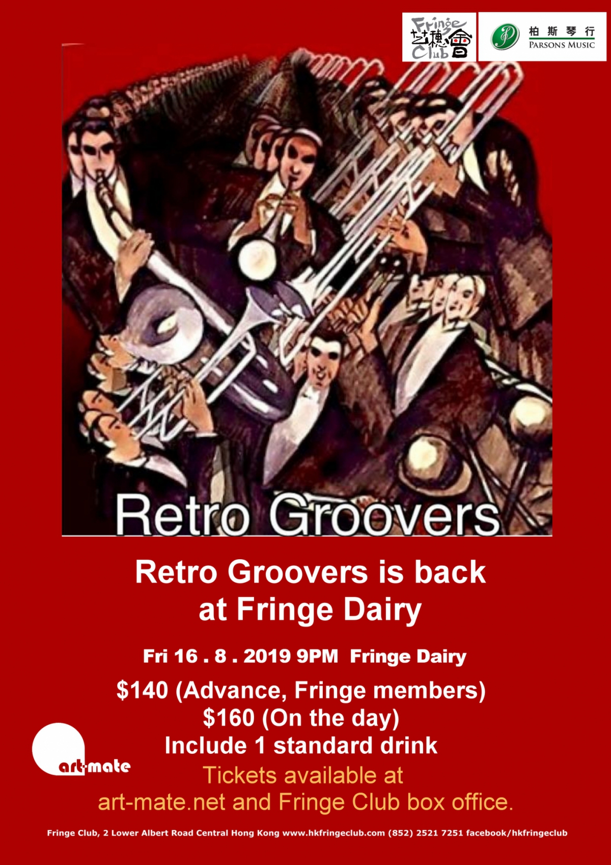 Retro Groovers - 一隊集融合爵士、R&B、放克、搖滾、搖擺及80年代耳熟能詳之的士高和跳舞音樂的樂隊,將會以一連串不同樂種的音樂娛樂大家,讓聽眾回到盛行管樂及的士高跳舞音樂的80年。