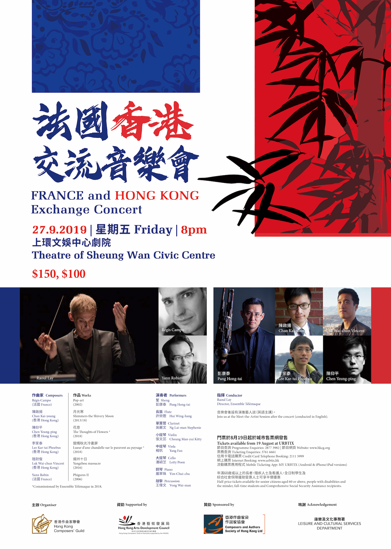 由香港作曲家聯會主辦,是次法國香港交流音樂會標誌著兩地之間當代音樂創作的交流。很高興能邀請法國Ensemble Télémaque的指揮和總監Raoul Lay 為這場音樂會擔任指揮。音樂會將演出合共6首作品 - 作品分別出自2位法國及4位香港作曲家。其中由陳仰平和李家泰創作的委約作品為笙與西樂小組而寫,並已於2018年10月在法國馬賽首演。