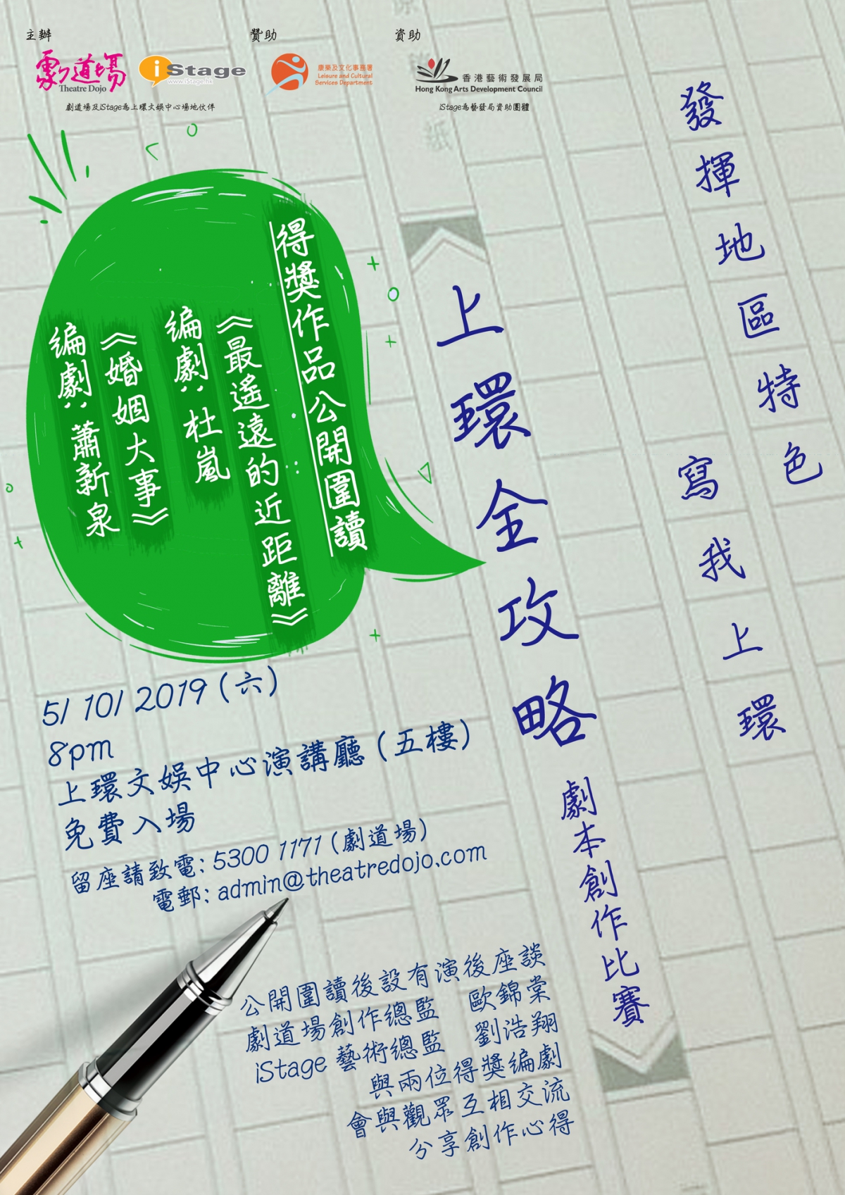 劇道場與iStage攜手舉辦「上環全攻略」劇本創作比賽,目的是讓社區人士參與戲劇發展,推動社區戲劇。
