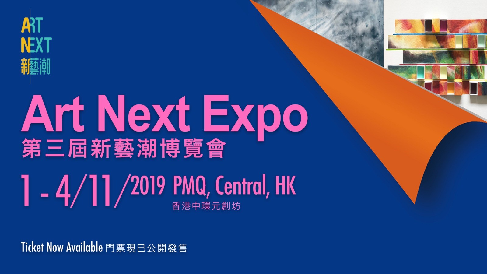 第三屆新藝潮博覽會將於2019年11月1至4日假中環PMQ元創方舉行,總共超過100位藝術家參與。整個展覽分為三大系列,分別為國際藝術家系列、多元系列以及特別計劃系列。